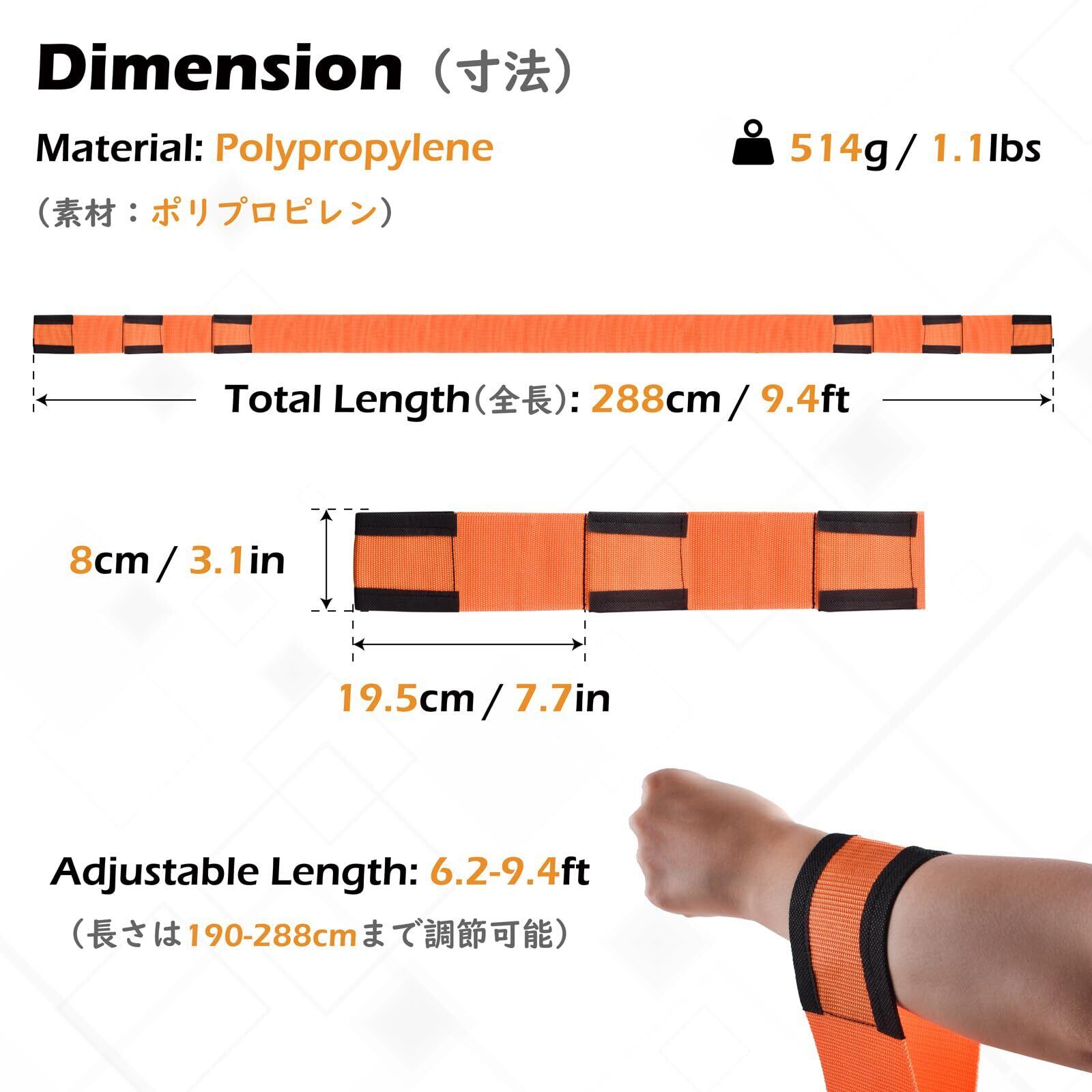 【二人で重い荷物もラクに運搬】約400kgまで対応。幅8cm・長さ2.8mで、冷蔵庫や洗濯機などの大型荷物も二人で安定して持ち運び可能。階段や狭い通路でも使いやすく、作業用手袋2組付きです