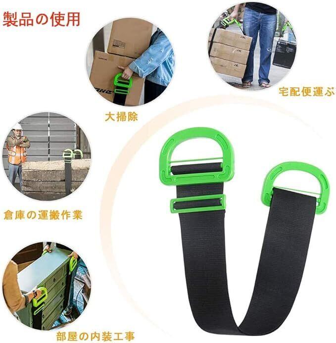【新着商品】2個 運搬ベルト 荷物運搬用ベルト 大型段ボール 家具家電 引っ越し 作業 大掃除 サイズ調節可能