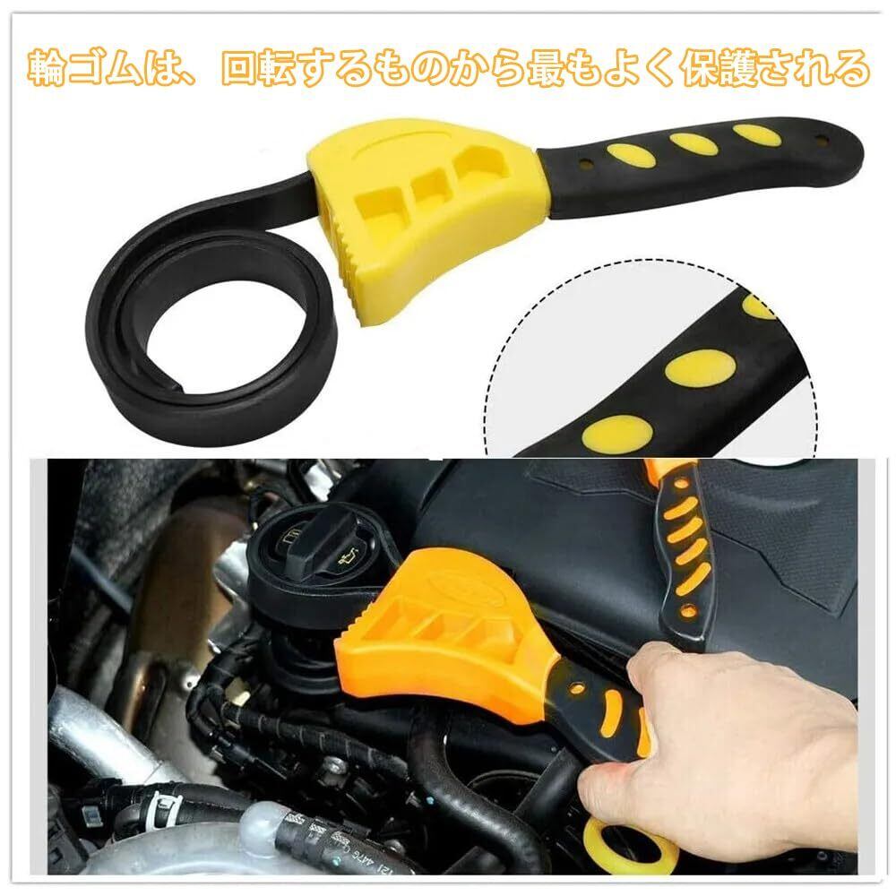 【広く使用】ゴム紐のレンチは自動車、農業、トラクター、オイル フィルターの取り外し、接着剤の接合箇所、シャワー・ヘッド、燃料フィルター、瓶のオープナ、缶のふた、ポリ塩化ビニールの接合箇所、びん、コック、水フィルター、流し、蛇口のような多くの分野で等使用することができます。