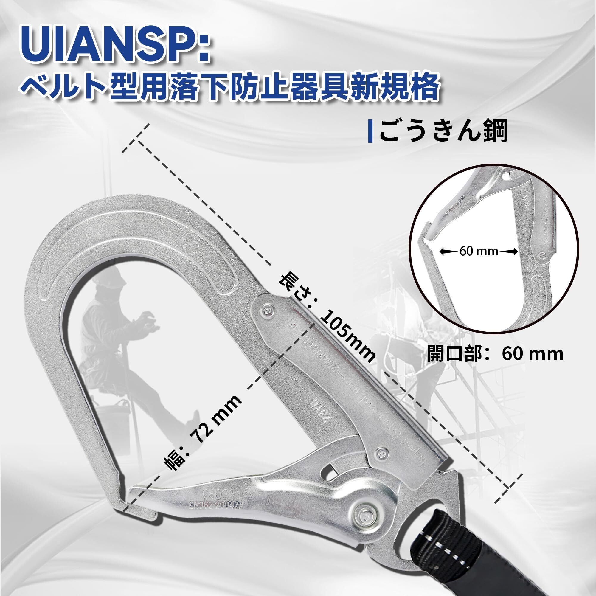 [UIANSP] フルハーネス安全帯 新規格 セット 墜落制止用器具 ランヤード一体型 落下防止全身保護キット、安全保護 デュアルハーネス脱着簡単 ハーネス安全帯 建設工学、高安全作業 (合金钢)