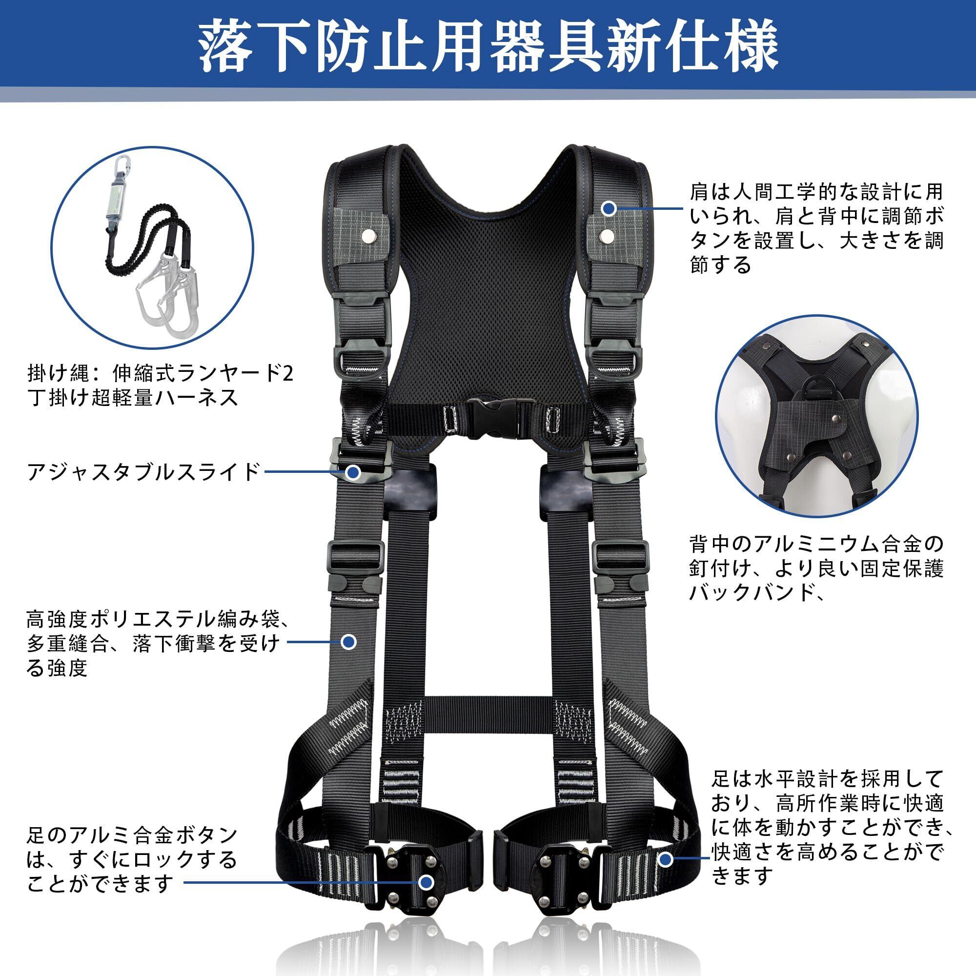 【限定セール】[UIANSP] フルハーネス安全帯 新規格 セット 墜落制止用器具 ランヤード一体型 落下防止全身保護キット、安全保護 デュアルハーネス脱着簡単 ハーネス安全帯 建設工学、高安全作業 (合金钢)