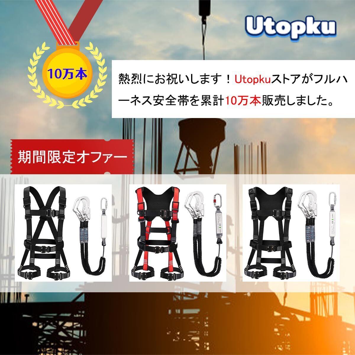 [UTOPKU] フルハーネス 安全帯 新規格 セット 脱着簡単 便利 安全 水平型腿ベルト ハーネス サイズ調整可能 腹部と胸と脚ワンタッチバックル 伸縮式 ダブルランヤード ハーネス 安全帯 新規格 建設工事 電力工事 外壁洗浄など 日本語説明書 使用可能質量100kg(150cm~200cm)