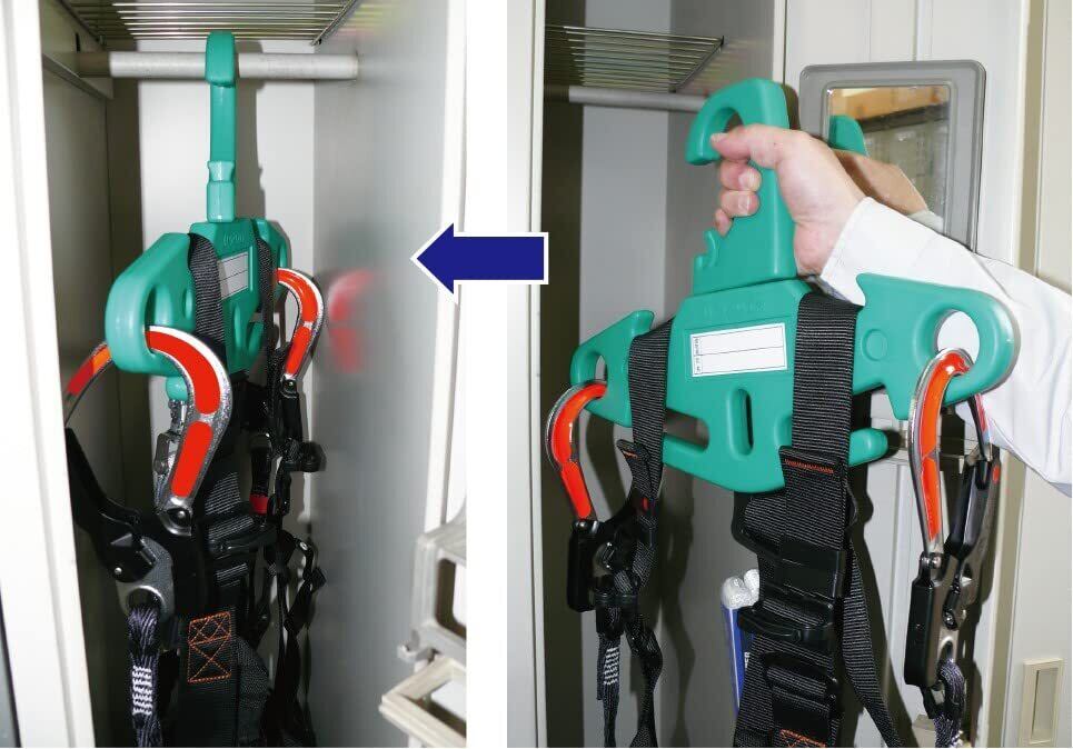 ●フルハーネスを着用時の形状を保持して保管することができるので、絡まらずにスムースな装着が可能です。●ロッカーに収納できるコンパクトタイプです。