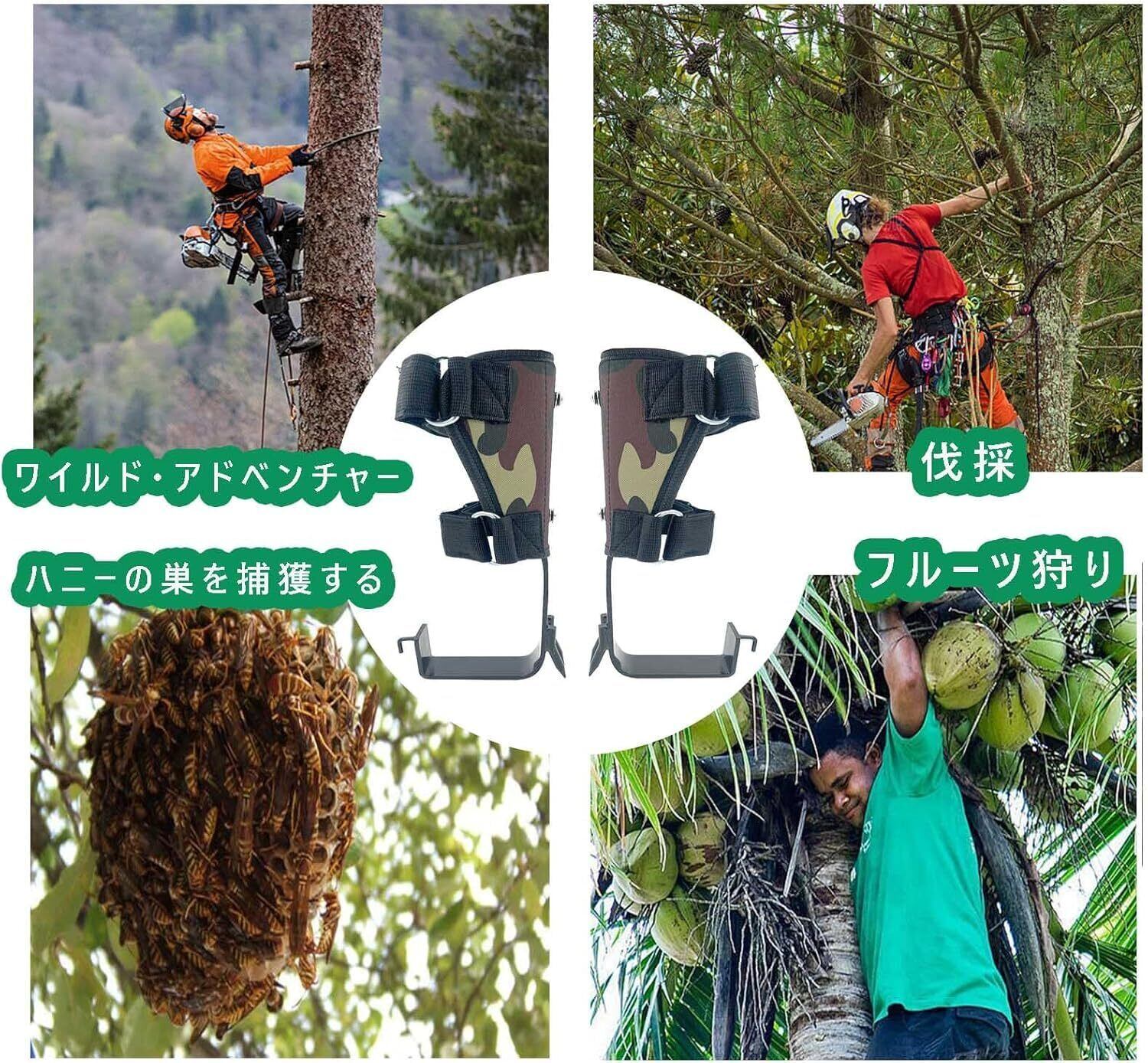 【人気商品】木登り器 木登り道具 木登りスパイク 直立木登りツール ベルクロデザイン 滑り止めクライミングツリースパイクシートベルト付き、調節可能なリストストラップ付き 落下防止 林業用品 伐採 道具 狩猟や