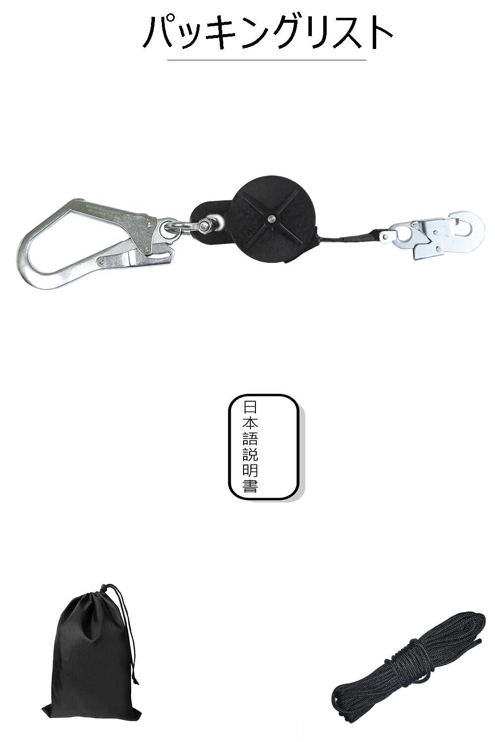 [Ulmior] 安全ブロック 3.4m 墜落防止装置(仮設用) 衝撃吸収 巻取式安全ブロック 昇降用 安全ブロック 昇降墜落防止装置 引寄せロープ 取り付き説明書 収納バッグ [安全帯 落下防止 電気工事 高所での安全作業]
