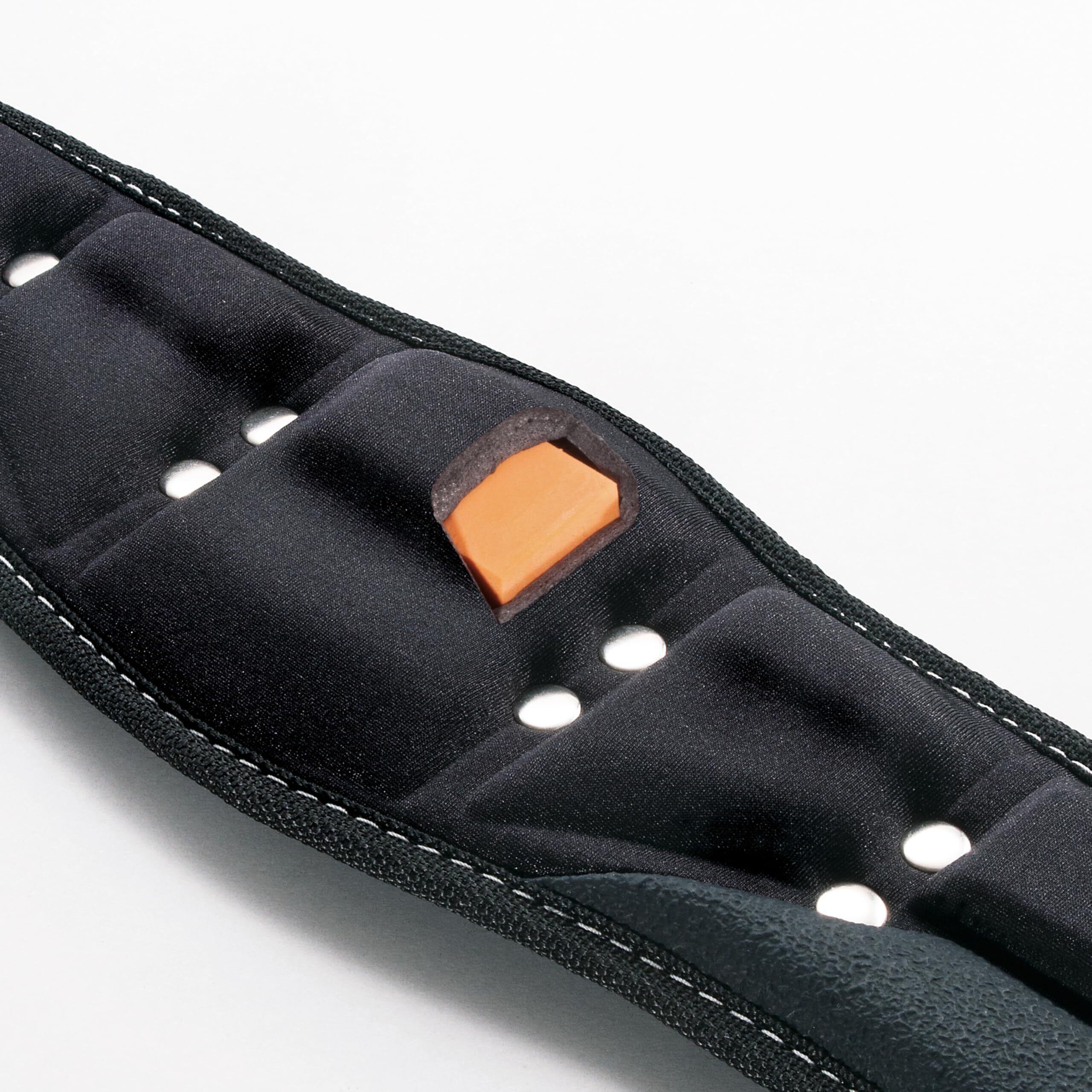 左右の吊ベルトに新設計縦ベルト用セフホルダー樹脂を2個標準装備