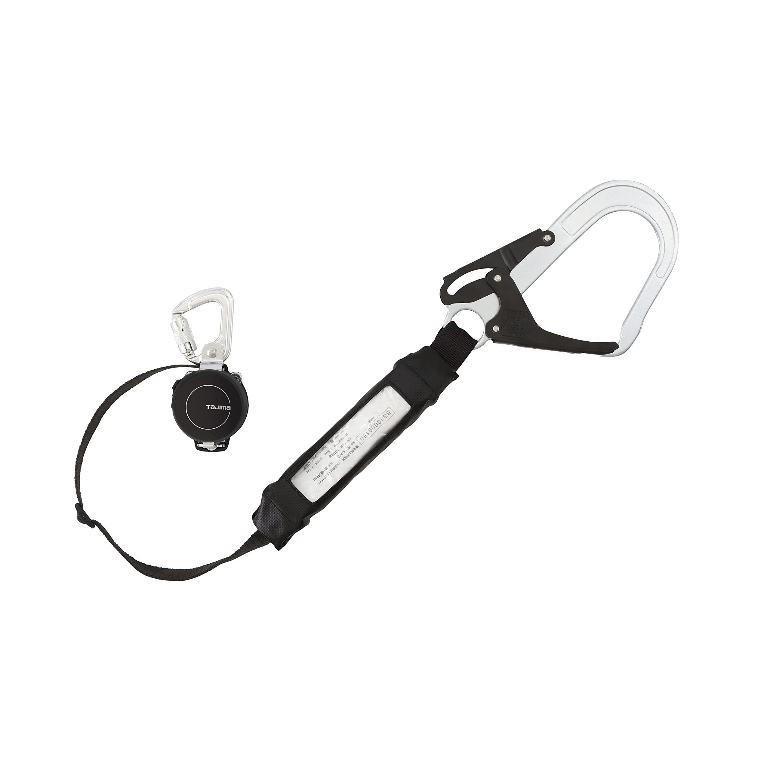 【数量限定】タジマ 新規格安全帯 使わない時に簡単に外せる 胴ベルト用ランヤードKR150FA シングルランヤード 常時巻取の超小型軽量リール 軽量スチールフックL4 オートストップへ切替可能 ランヤードを好みの長さに固定できるアジャストストッパー B1KR150FA-CL4