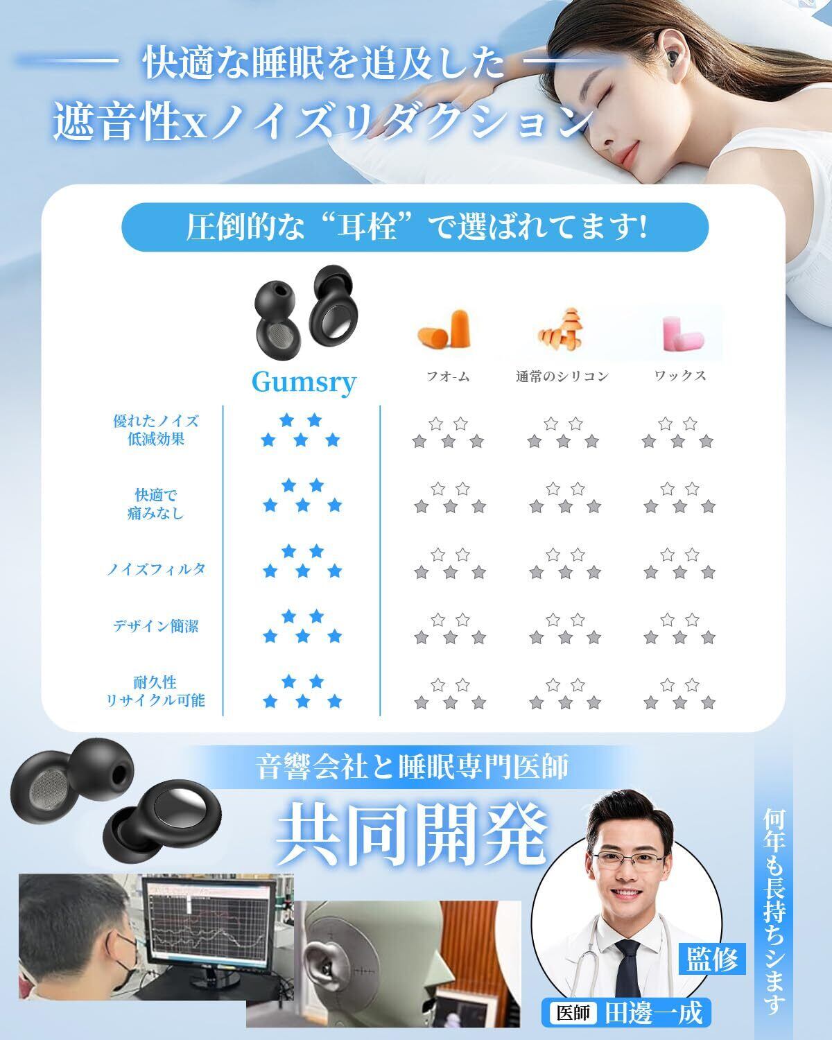 ↕️【心を込めた究極のイヤープラグ、周りの音から耳を守る】 長時間おおきな音に耳がされることによって、睡眠用·ライブ用耳栓を耳への負担を軽減することが大切です。Gumsryイヤープロテクターは、独自開発のSNR55dBフィルターを搭載し、一定の音圧軽減ができるようにデザインされていますが。イヤホンのような快適なつけ心地と、睡眠用耳栓には見えないスタイリッシュなデザインを兼ね備えています。装着しても耳への疲れ・いわかんがありません。寝返りの際にいたくなりにくく邪魔になりにくい耳栓です。