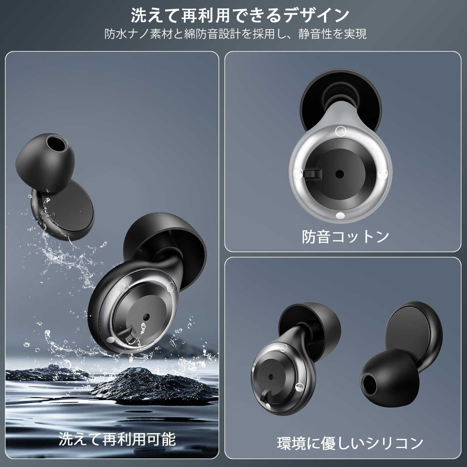 【騒音カットの重宝】睡眠時の騒音(いびき、工事など)を和らげたり、仕事に集中するために欠かせないノイズキャンセリング 耳栓です。睡眠障害や聴覚過敏、聴覚障害でお困りの方、夜に眠りが浅い方に深く快適な眠りをサポートします。また、日常の生活音から離れ、仕事や勉強、読書などに集中したい時にも最適です。ご注意:完全遮音ではなくアラームや呼びかけなど必要な音は聞こえるので安心してご使用いただけます。