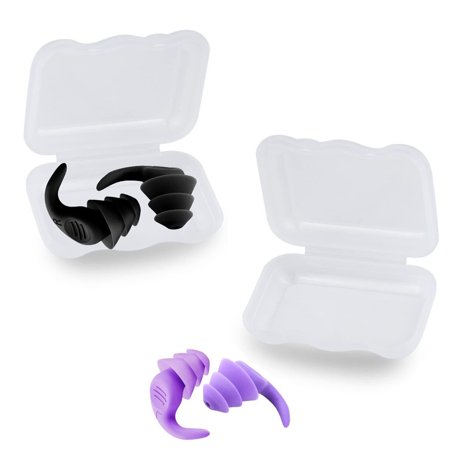 【特別価格】耳栓水泳用 シリコン 睡眠完全遮音 ライブ用 2ペアのソフトシリコンノイズリダクション 使用可能 水洗いOK おしゃれ 睡眠 旅行 仕事 スイム 勉強撮影用の再利用可能で洗える快適な 騒音対策(紫色,黒色)
