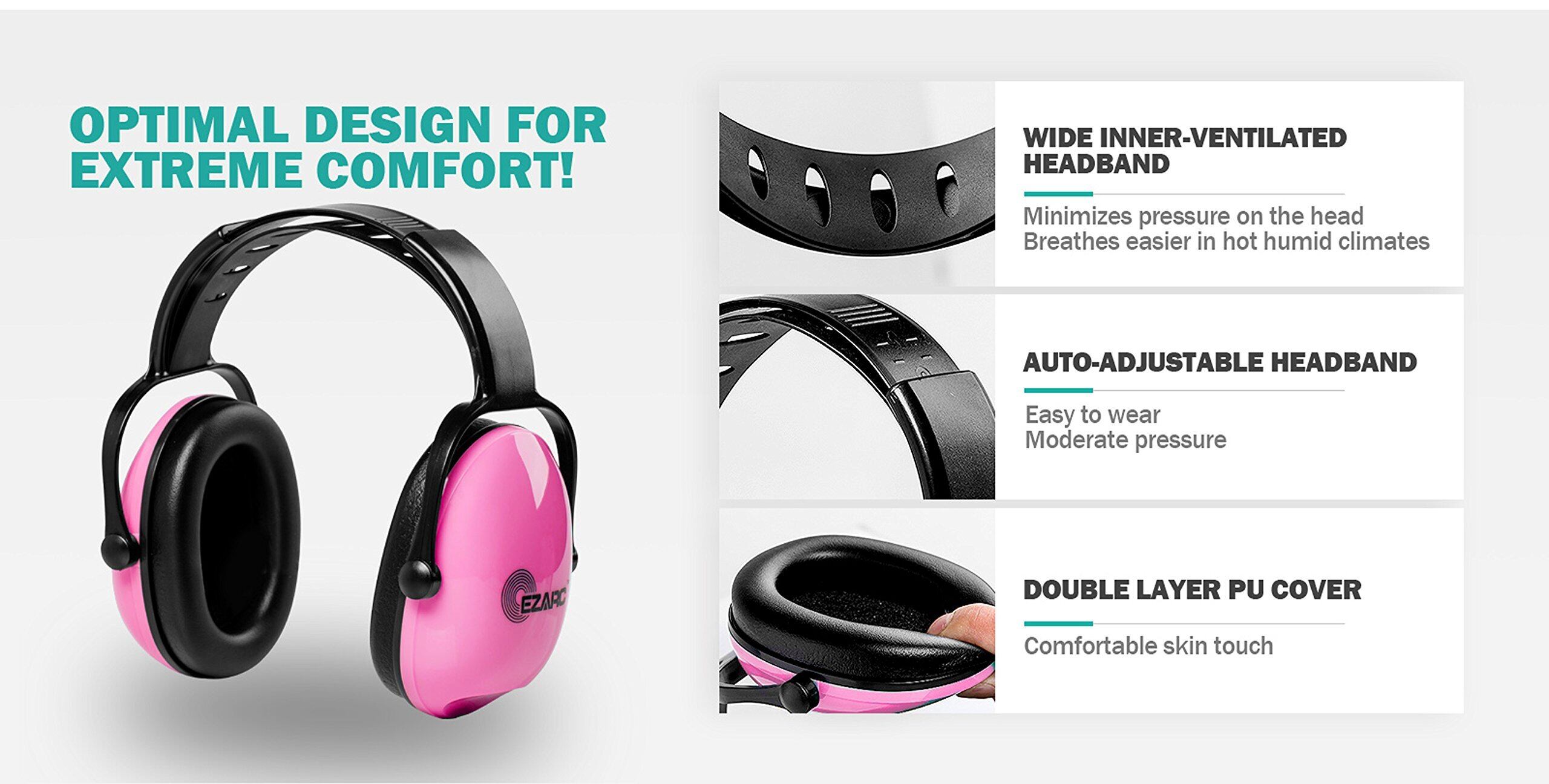 [EZARC] 防音イヤーマフ 遮音値 SNR30dB 耳当てプロテクター 折りたたみ型 子供用 学生用 睡眠・勉強・聴覚過敏緩めなど様々な用途に 騒音対策(ピンク)