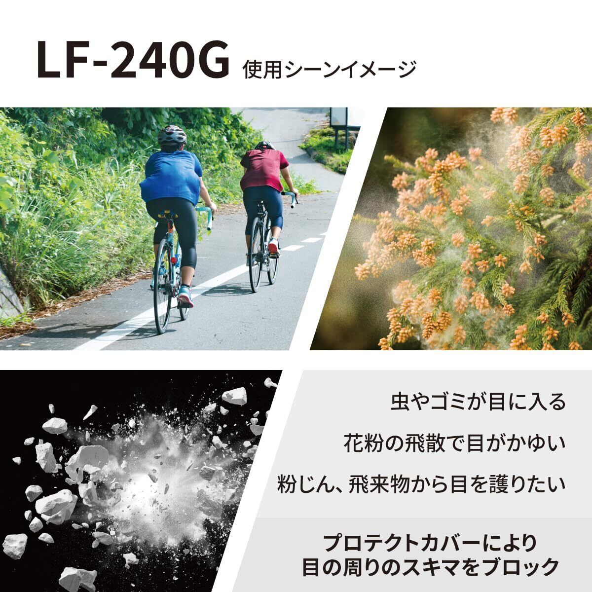 「粉じん、飛来物から目を護りたい」「虫やゴミが目に入る」「花粉の飛散で目がかゆい」など作業、スポーツ、日常生活の様々な場面で目を護ります