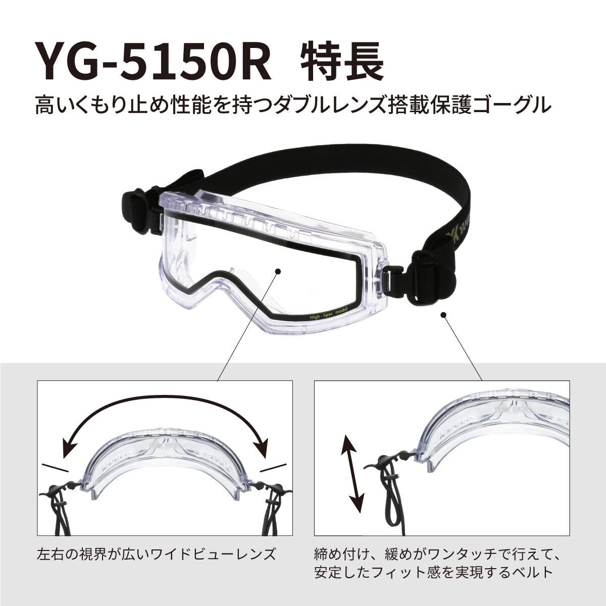 山本光学 YAMAMOTO ハイスペックモデル YG-5150R プロユース フルスペックモデル 内部換気ベンチレーション 眼鏡/マスク併用可 クリア くもり止め ダブルレンズ (外側PETハードコート+内側くもり止め) 日本製 紫外線カット