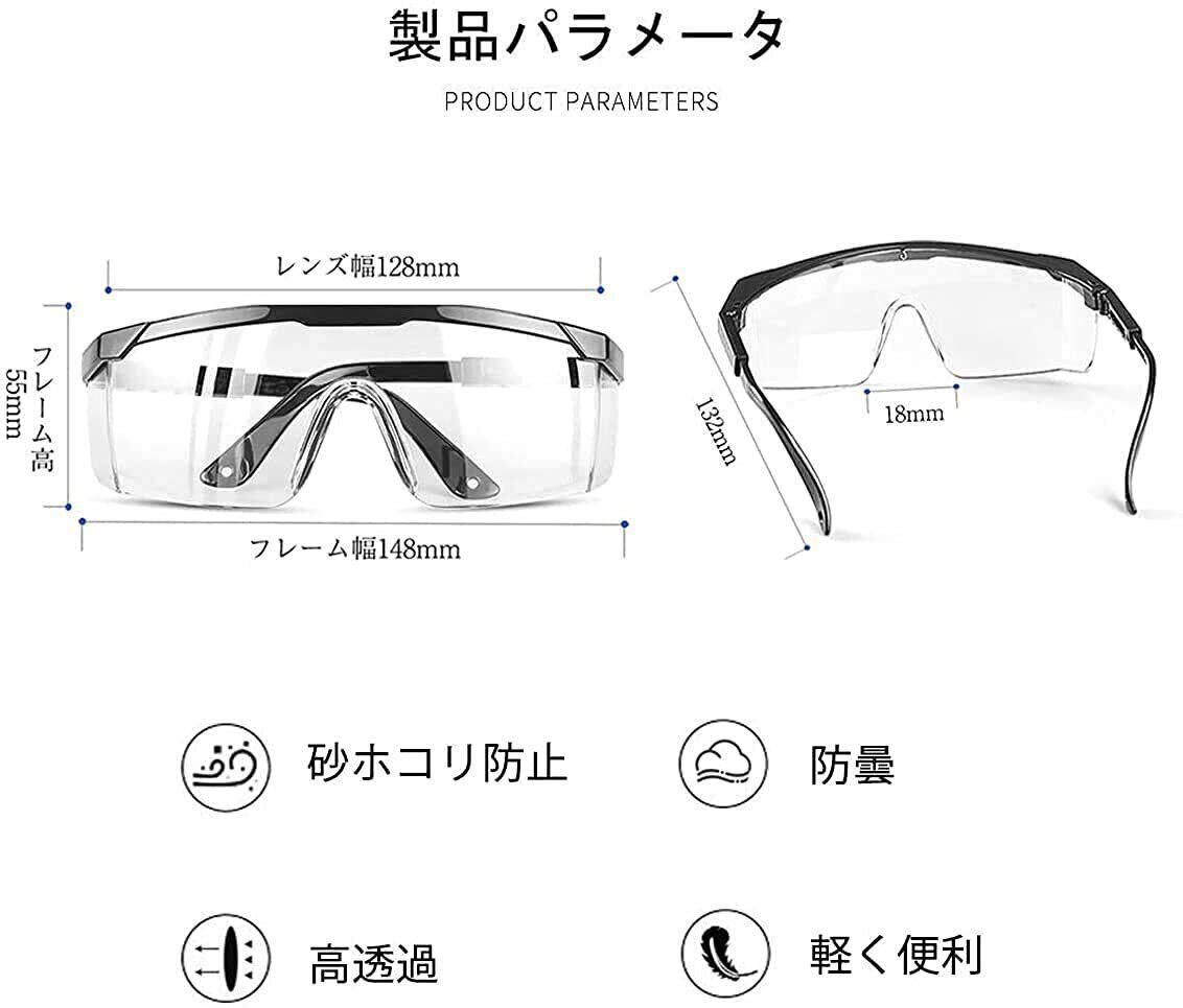 【透過率99%ゴーグル】4個セット 透過率99%クリアな見えやすさを実現 防水性、水滴が付着しずらく、作業の邪魔をしません。 防霧コーティングがされている為、遠近関係なく見通しが聞きます。