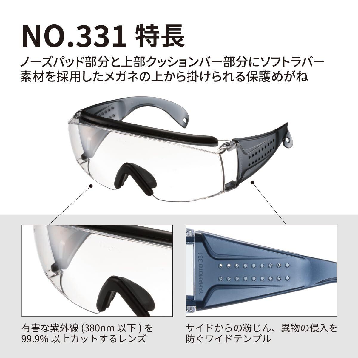 【数量限定】山本光学 保護めがね NO.331 メガネの上からかけられる キズに強い くもり止め 上部クッションバー&ノーズパッド付き ワイドテンプル 日本製 JIS 紫外線カット