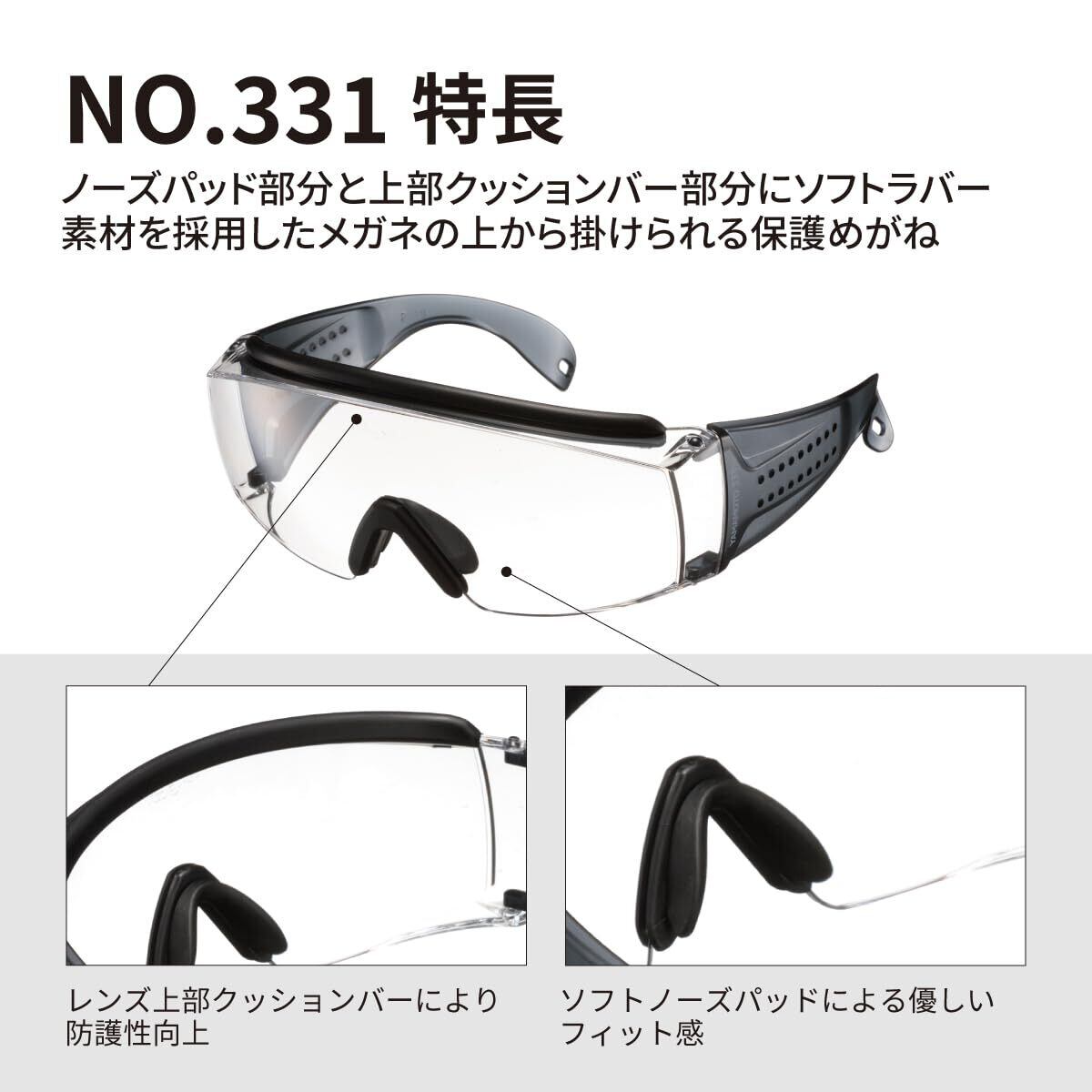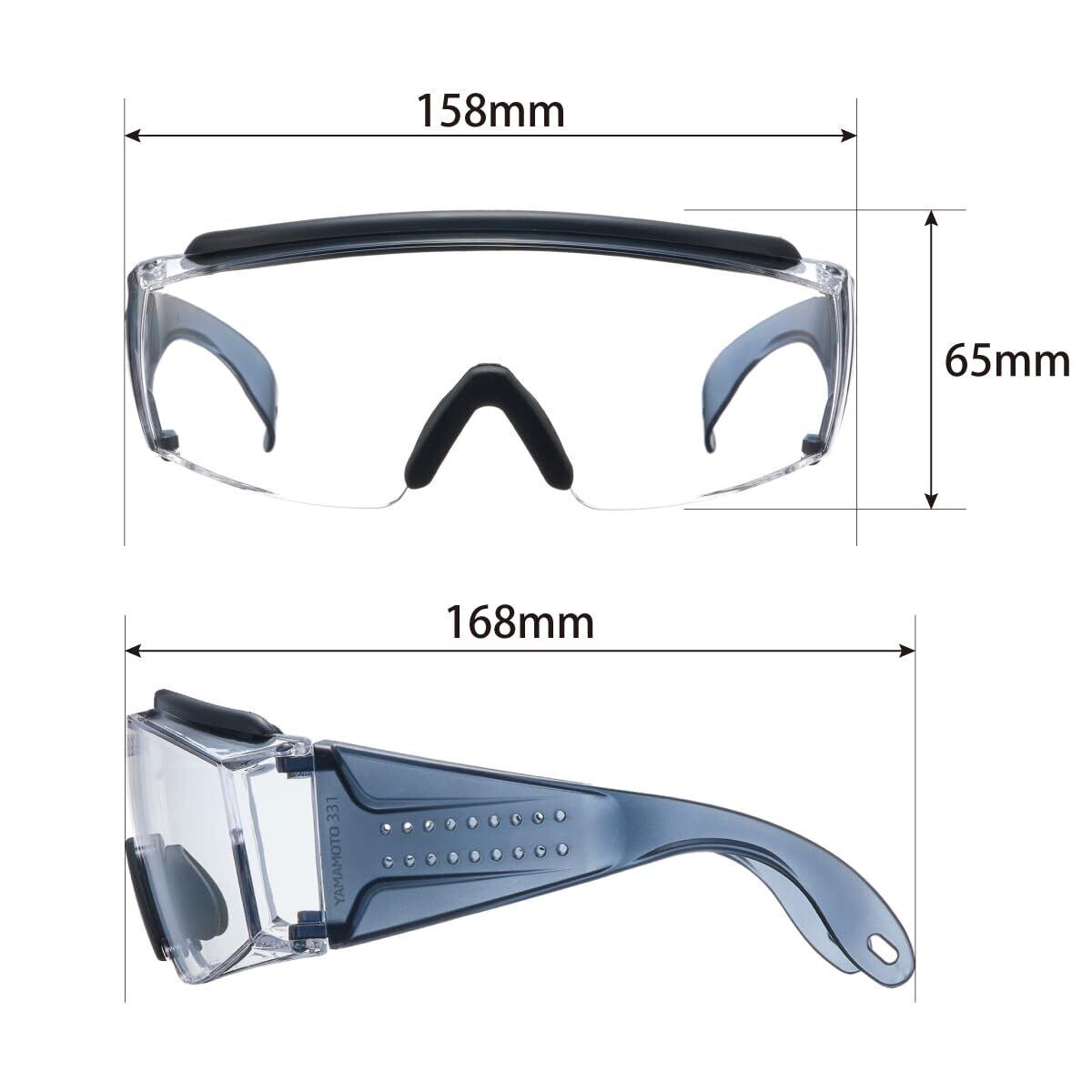 山本光学 保護めがね NO.331 メガネの上からかけられる キズに強い くもり止め 上部クッションバー&ノーズパッド付き ワイドテンプル 日本製 JIS 紫外線カット