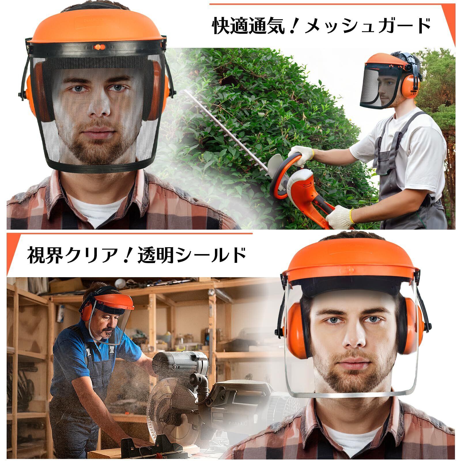 [GUARDLEAD] イヤーマフ付き フェイスガード 草刈り用 メッシュ・透明サンバイザー両方付 顔面保護 防災面 聴覚保護 Free Size