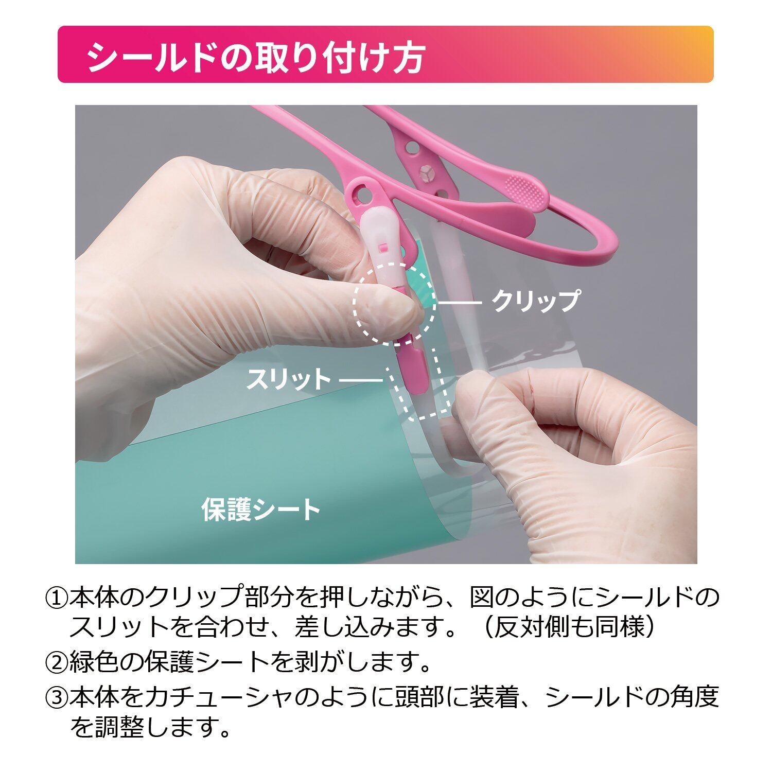 [注意点] ※当商品はシールドのみの販売となっております。本体は別途販売しております。 ※シールドは沸騰消毒には対応していません。 ※防災面のような強度はありません。感染対策用としてお使いください。