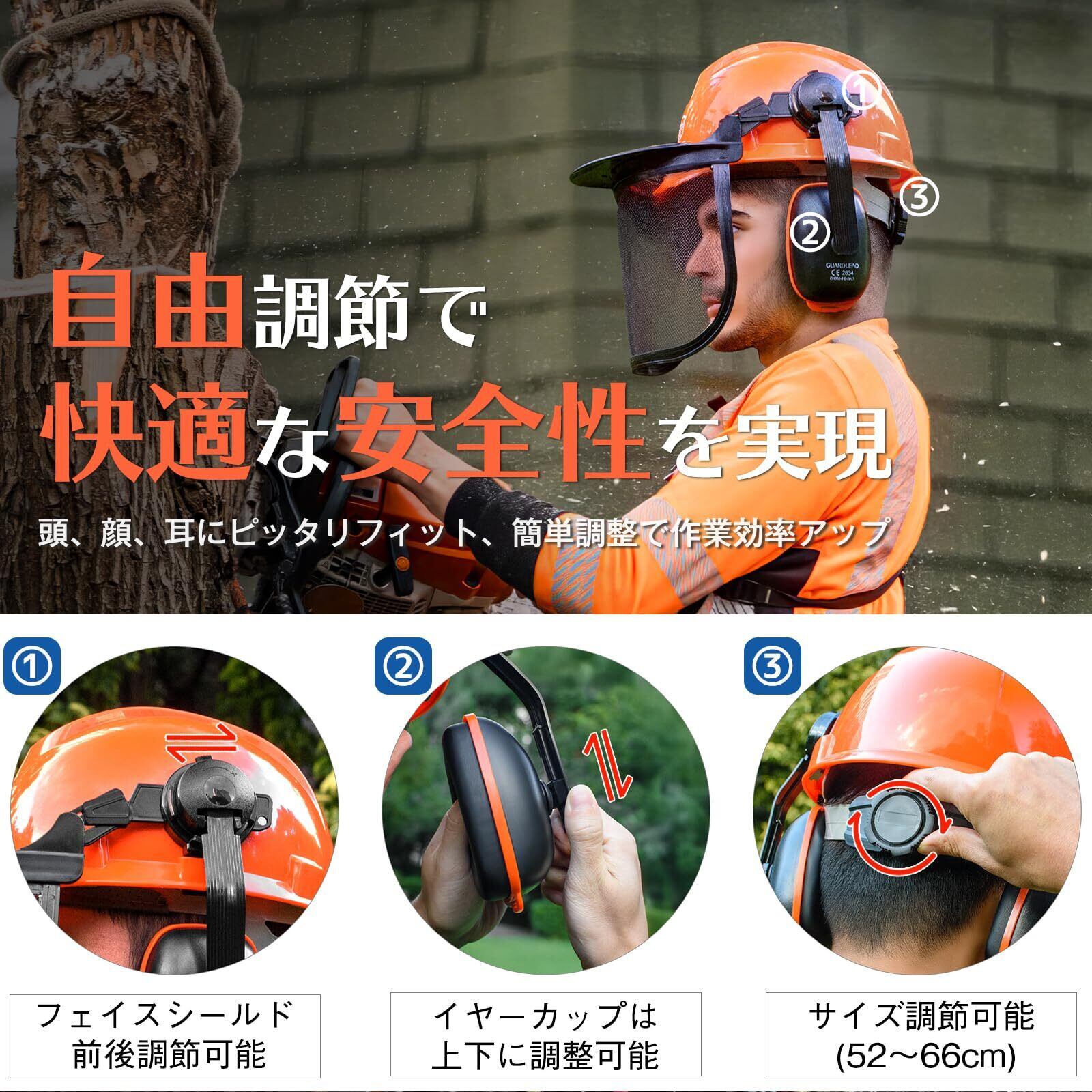 林業 ヘルメット 草刈り・伐採用 安全ヘルメットセット イヤーマフ・メッシュシールド・防曇保護メガネ・あご紐付き チェーンソー用 防具