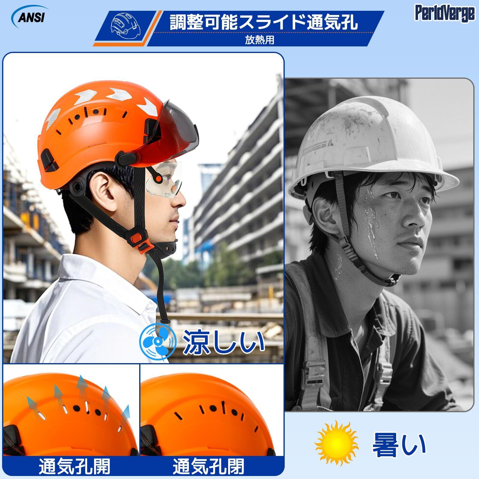 安全ヘルメット 建設用ヘルメット オレンジ 耐久性 作業用ヘルメット かっこいい 6点吊りサスペンションシステム バイザー付き 二重保護 調整可能 通気性 軽量ヘルメット作業用 現場用 工事用 EN397規格準拠
