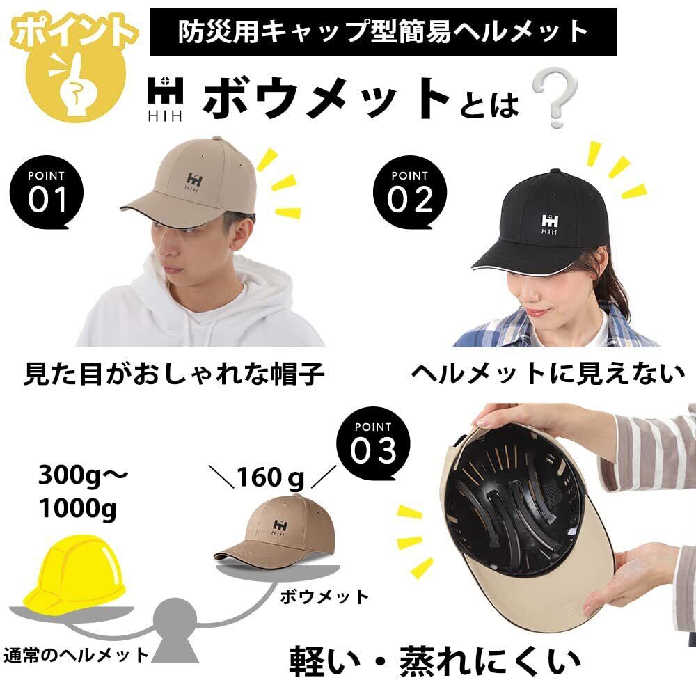 HIH デザイナーズヘルメット 帽子型簡易ヘルメット 【HIH ボウメット】lightメッシュタイプ【福島県企業が開発】 防災用簡易ヘルメット CAPメット キャップメット 安全帽 防災グッズ (カーキ)