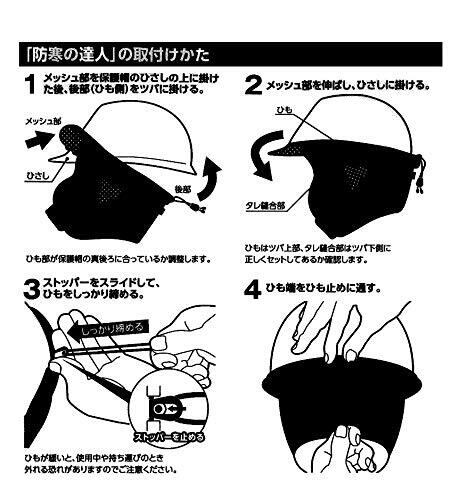 耳部はメッシュの三角窓付で寒さを防ぎつつ聴音確保ができる安全設計です。