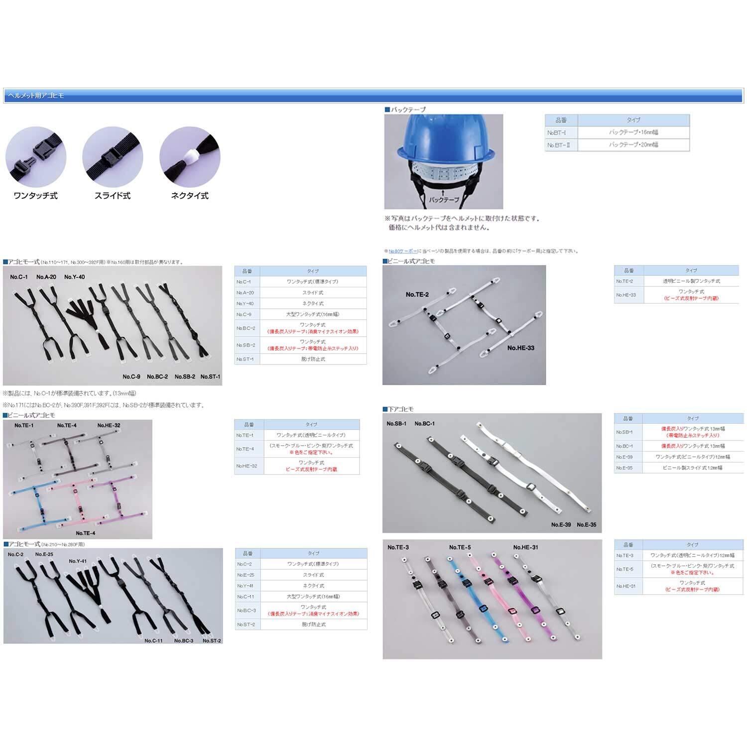 ●あご紐です。●【用途】●ヘルメット用 透明アゴ紐。●【機能・特徴】●あご紐による日焼けを防ぎます。●【仕様】●12mm幅。●【材質】●塩化ビニ-ル。●取り付け部:樹脂製。●【商品サイズ】幅14×高さ220×奥行2mm 重量19g●商品コード:4962087103417●JANコード:4962087103417●ブランド名:TOYO●商品名:透明ビニール下あご紐●規格:TE-2