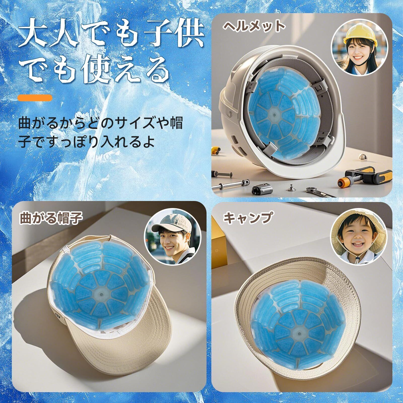 【28℃自然冷却技術で厳しい暑さを乗り切ろう!】このPC-Mキャップは、独自の自然冷却技術を採用しています。従来の冷却マットとは異なり、P-CM(Phase Change Material、相変化材料)を採用され、相変化温度28℃に達すると、周囲の熱を吸収して接触物体の温度を下げくれ、電気代を節約しながら快適なひんやり感を実現。頭部と全身を心地よい涼しさで包み込みます!P-CM冷却帽子パッドは28℃以下で自然に冷却され、何度でも繰り返し使用できる製品です。頭部を冷やすことで、全身の熱も冷やすことができます。P-CM技術による冷却効果で、適度な涼しさを保ち、快適な温度をキープします!製品が溶けても、冷凍庫に入れるだけで再び凍らせて繰り返し使えます!高温多湿の環境での作業や活動中に、熱中症を予防するために使用できます。特に高齢者や子供にとって安心です。