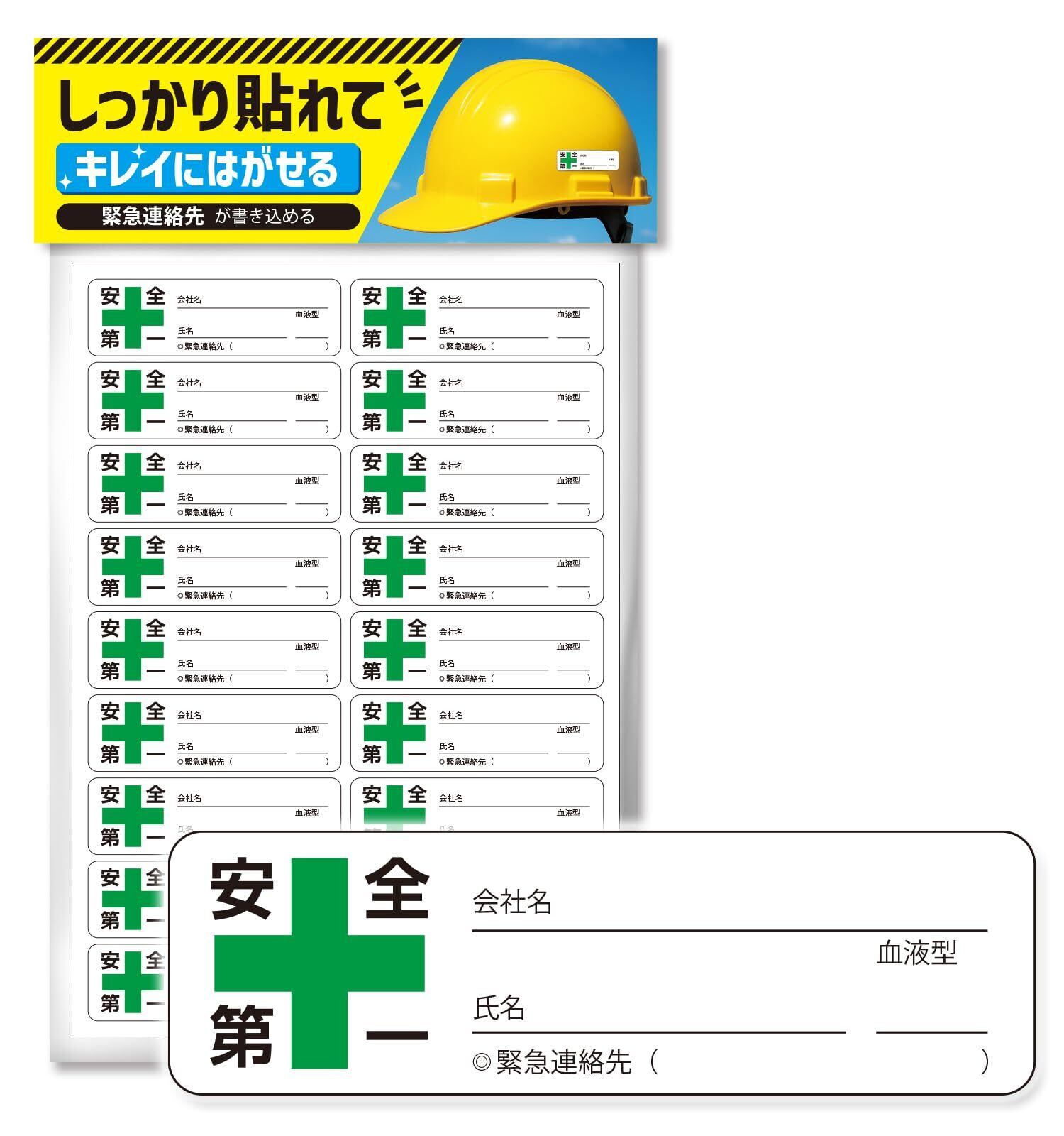 【限定セール】安全第一 シール ヘルメット 名前 血液型 再剥離 ステッカー 防水 屋外対応 ブラック NYANDELMO ND-0240-R03_1sheet