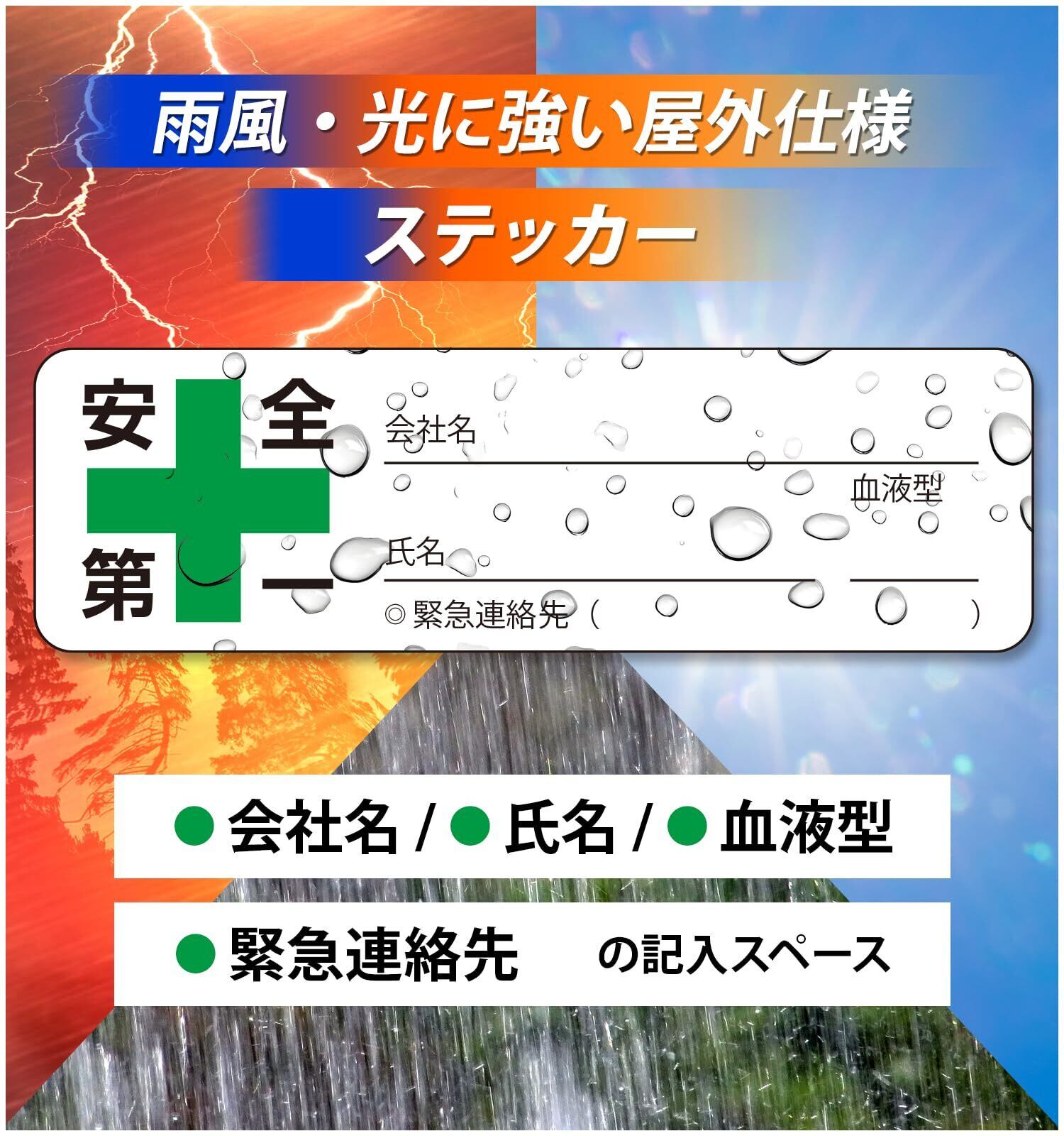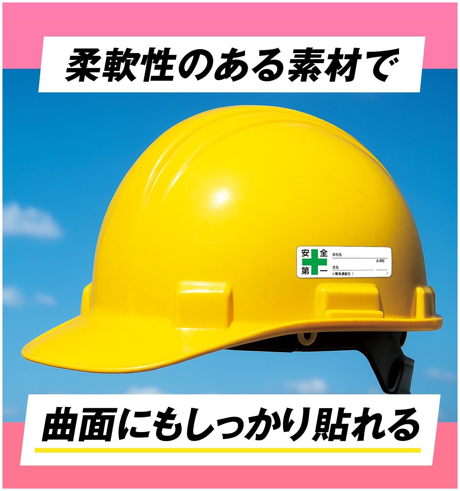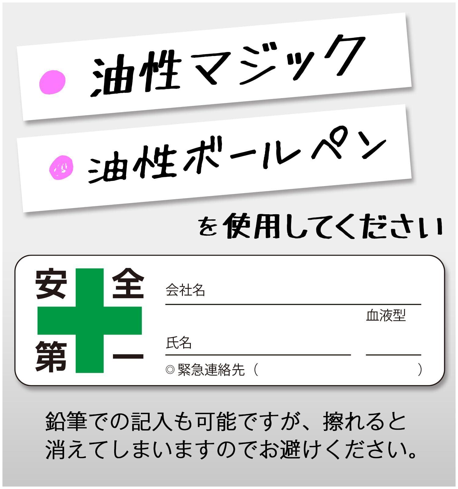 【氏名・会社名・血液型を記入可能】油性ペンで記入できるスペース付き。現場での識別管理や緊急時の対応に便利。擦れにも強く、視認性も良好です。