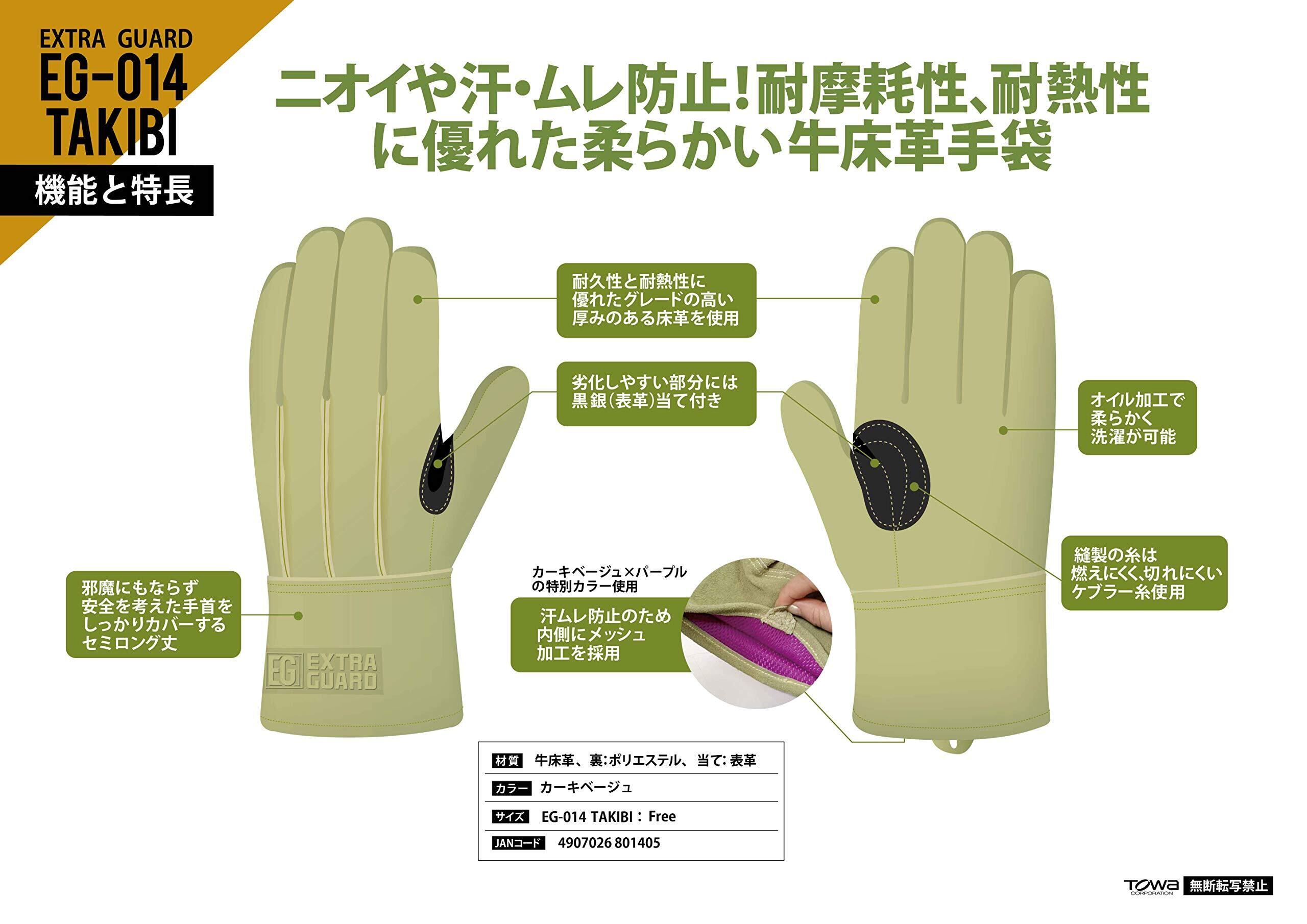 東和コーポレーション(Towa Corporation) EXTRAGUARD TAKIBI(SP) セミロングタイプ Fサイズ カーキベージュ 5本指タイプ EG-014