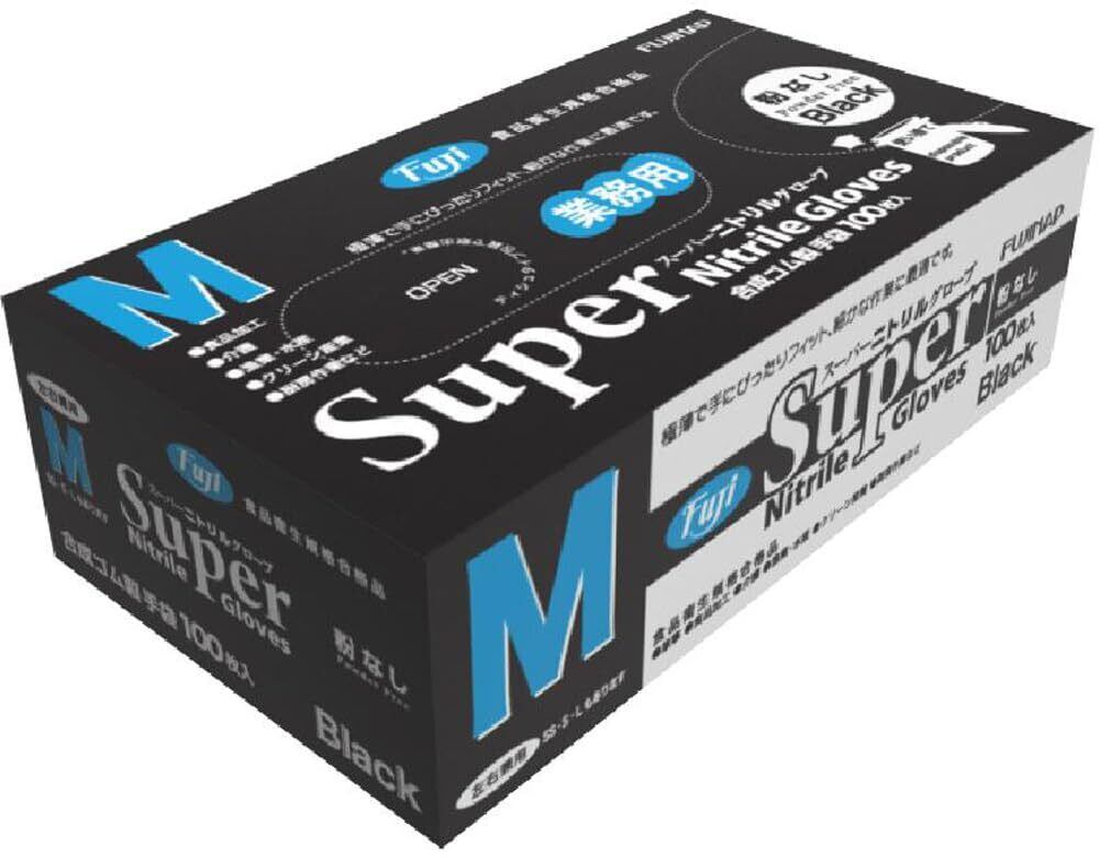 【人気商品】フジ スーパーニトリルグローブ 粉無し ブラック M 100枚入り