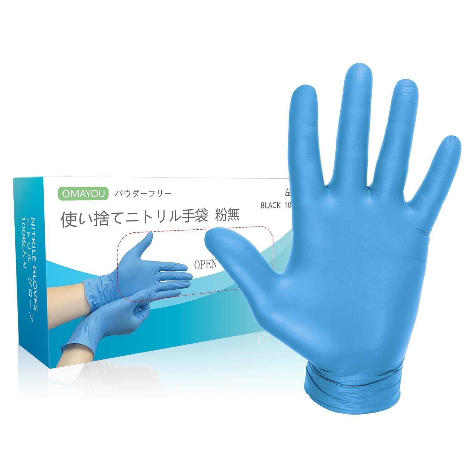 [OMAYOU] ニトリル手袋 ゴム手袋 使い捨て手袋 100枚入れ ニトリルゴム手袋 ニトリルグローブ 衛生予防対策粉なし業務用 食品加工 介護 調理用 【食品衛生法適合】 S/M/L左右兼用