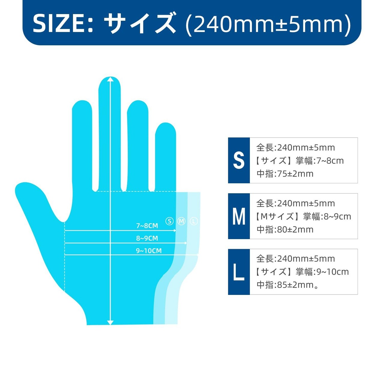【粉なし・左右両用】指先にエンボスを採用し滑り止め抜群、手のひらにぴったりフィット、!パウダーフリーで指先の細かい作業にもぴったりで。作業効率を高めます。手袋をしたままスマホ操作もOK!