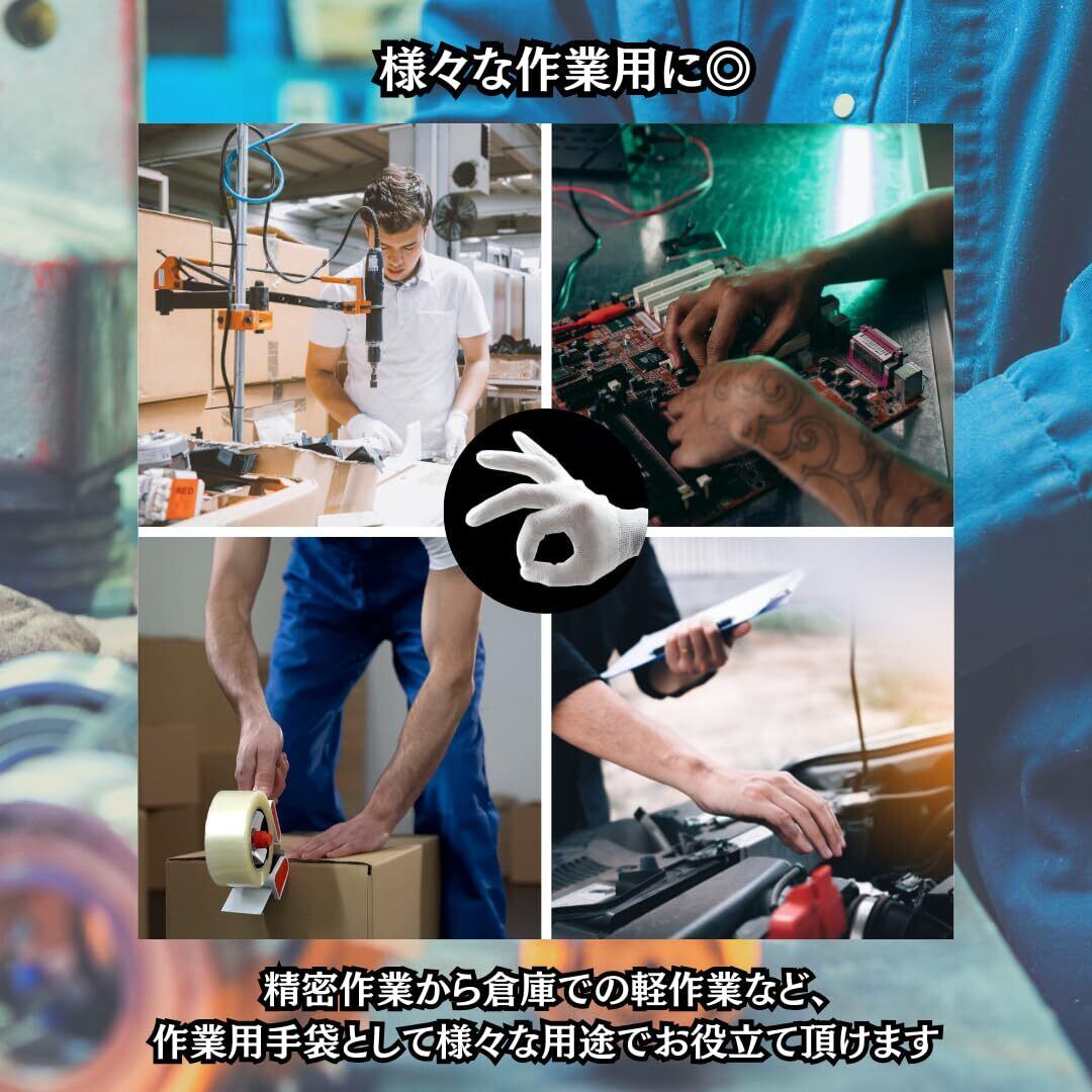 【様々な作業用に◎】作業用手袋として、精密機器の組立作業、製品の検査作業、倉庫でのピッキング、梱包、運転、印刷、園芸、工場でのライン作業など、様々な用途にお役立て頂けます。
