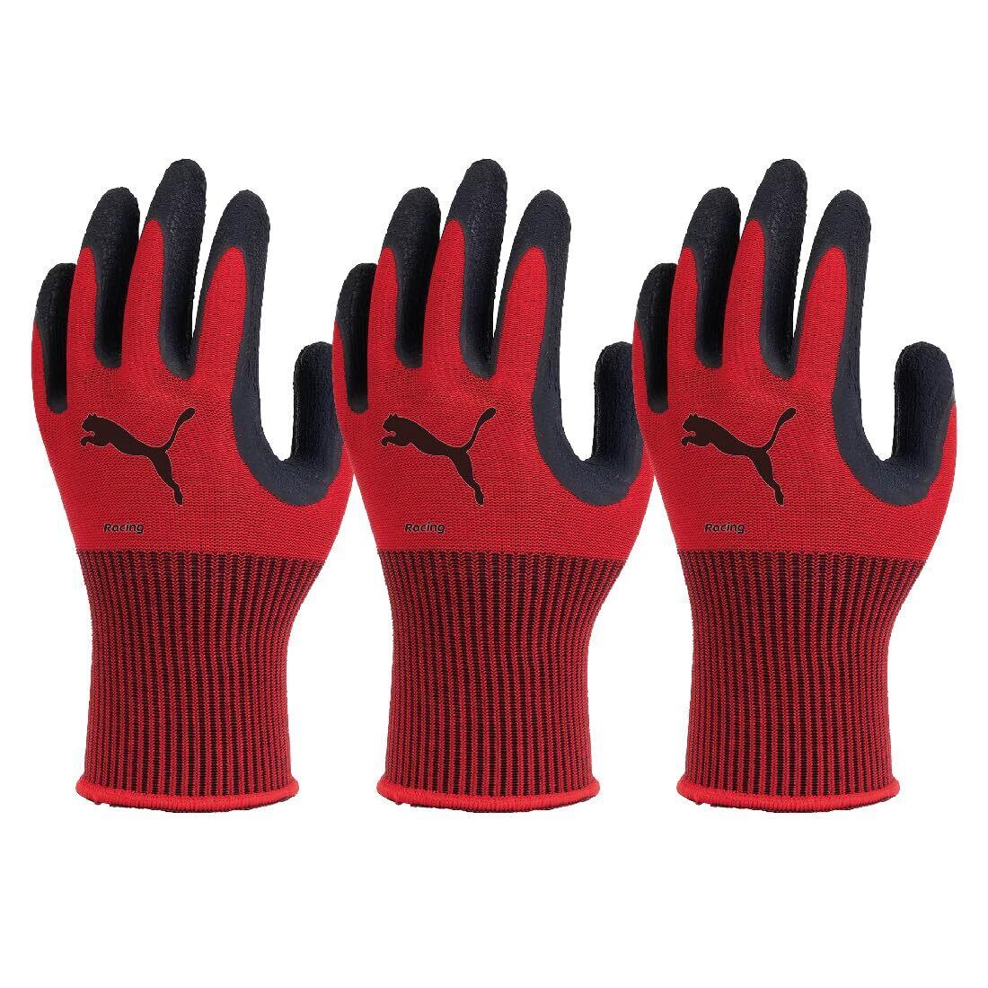 [ユニワールド] PUMA(プーマ)WORK GLOVES 3Dグローブ レーシング 3双セット PG-1350-3P WORK GLOVES 天然ゴム レッド Mサイズ