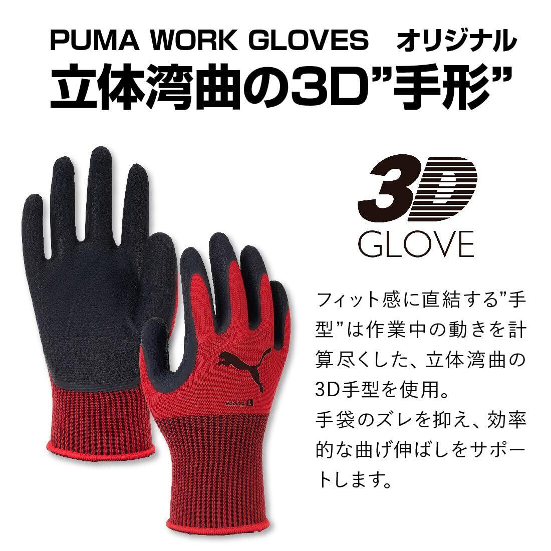 【人気商品】[ユニワールド] PUMA(プーマ)WORK GLOVES 3Dグローブ レーシング 3双セット PG-1350-3P WORK GLOVES 天然ゴム レッド Mサイズ