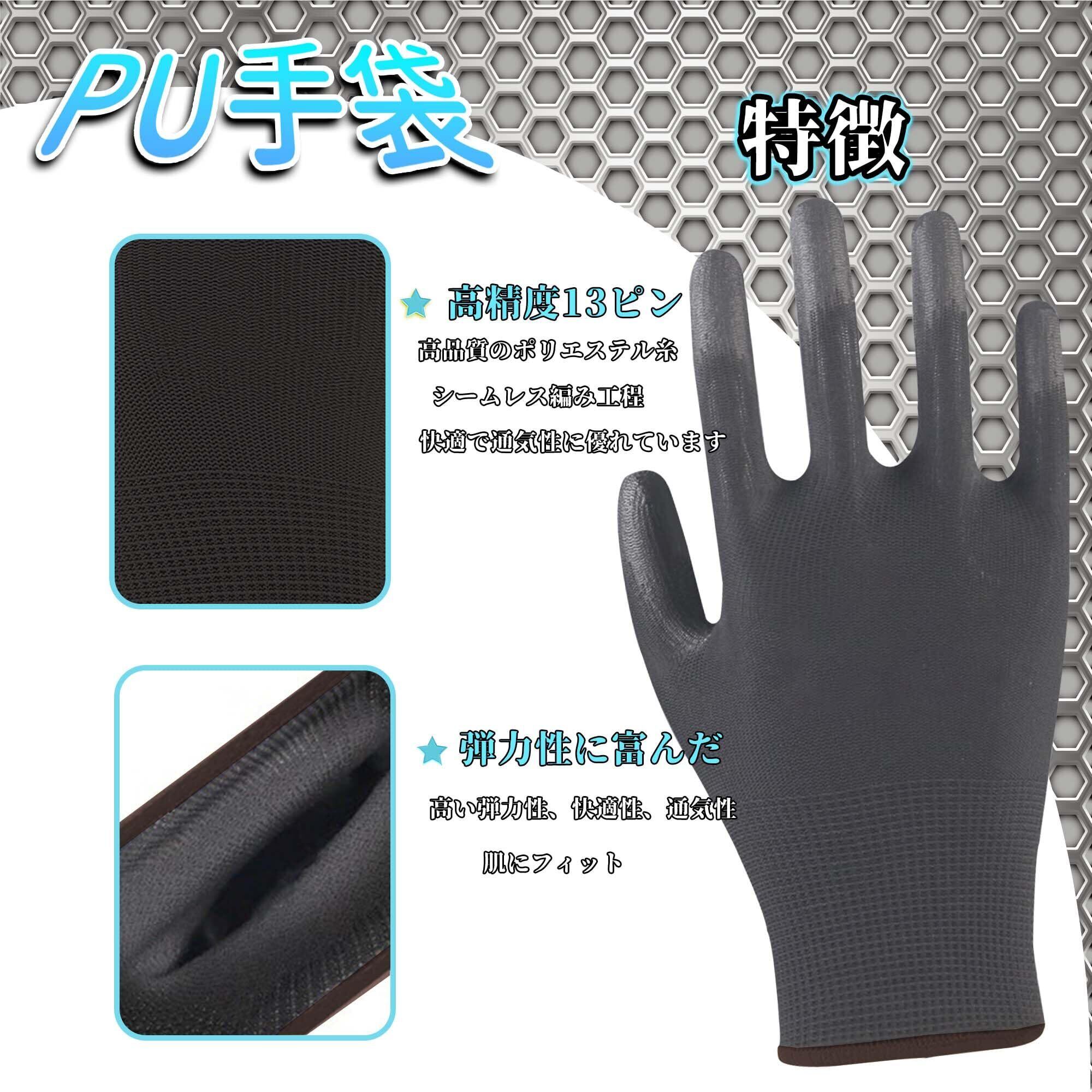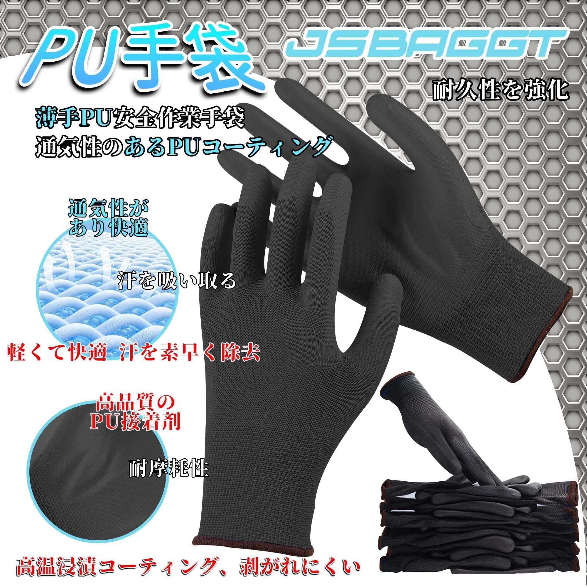 [JSBAGGT] 作業用手袋 PU薄手 まとめ買いお得 滑り止め/耐摩耗性/通気性 軽作業・精密機器・DIY・ガーデニング用