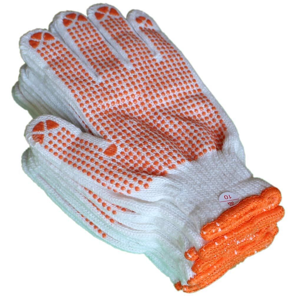 寒い所での作業にぴったり!しっかりグリップする滑り止め付き裏起毛防寒軍手。 裏面起毛加工で着け心地よく暖か、ポリエステルと綿の混合で、吸湿速乾性があり作業や荷運びから日曜大工、園芸、アウトドア、通学など多様な用途で大活躍。 軍手・作業用手袋 5双入 手袋/ポリエステル・綿・その他、滑り止め/塩化ビニール。 サイズ:フリー、全長:23.5cm、手のひら幅:10 cm、中指長さ:8cm
