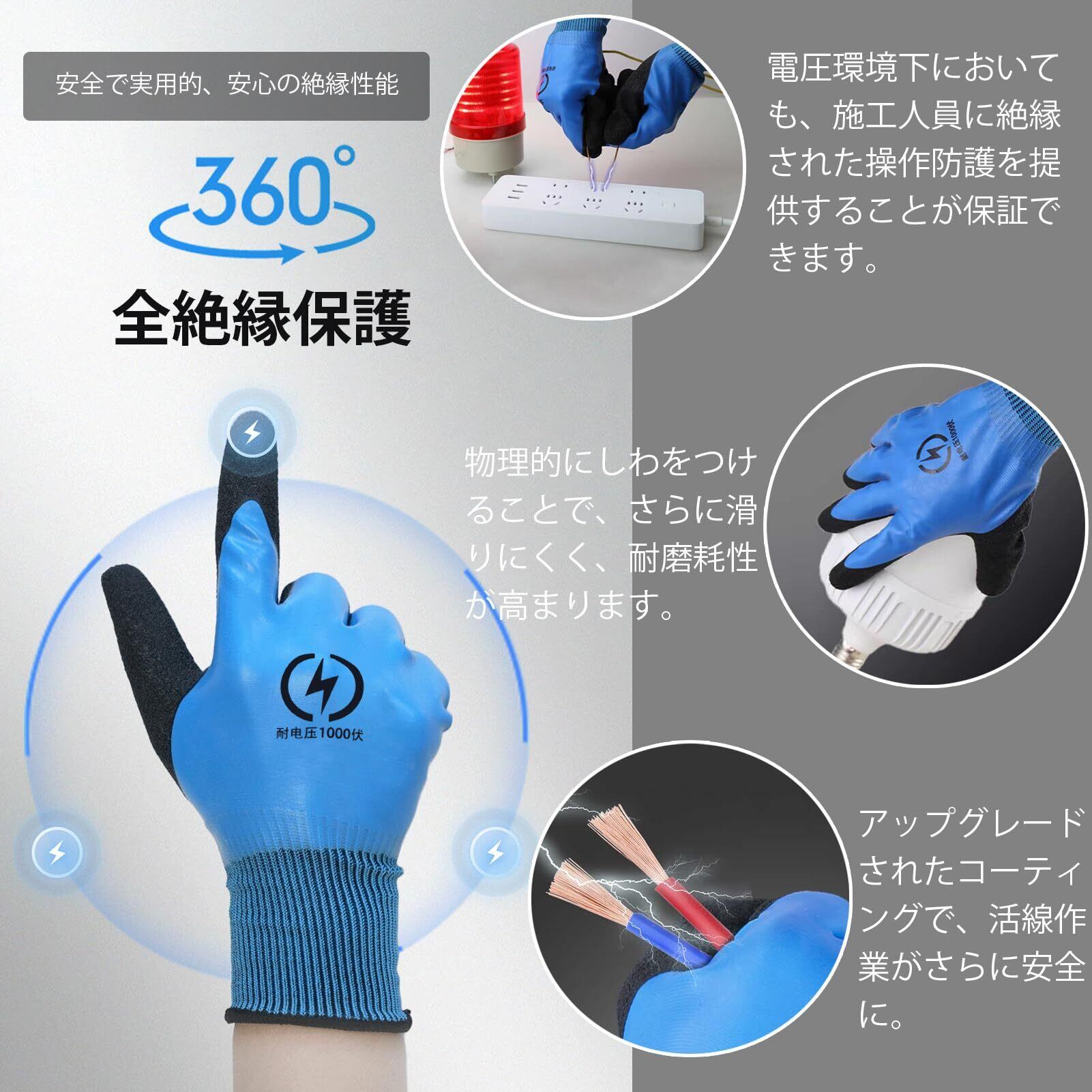 [Hodyludy] 絶縁手袋 1000V 電工手袋 電気絶縁 ゴム手袋 滑り止め 磨耗に強い 防水 安全な作業 溶接 配線 作業用 防護グローブ 感電防止 電気工事からDIYまで幅広く使える