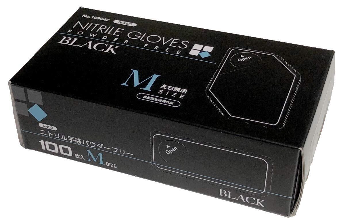 水野産業 【食品衛生法適合】 ニトリルグローブ 黒 ブラック パウダーフリー 100枚入 N460 (M)