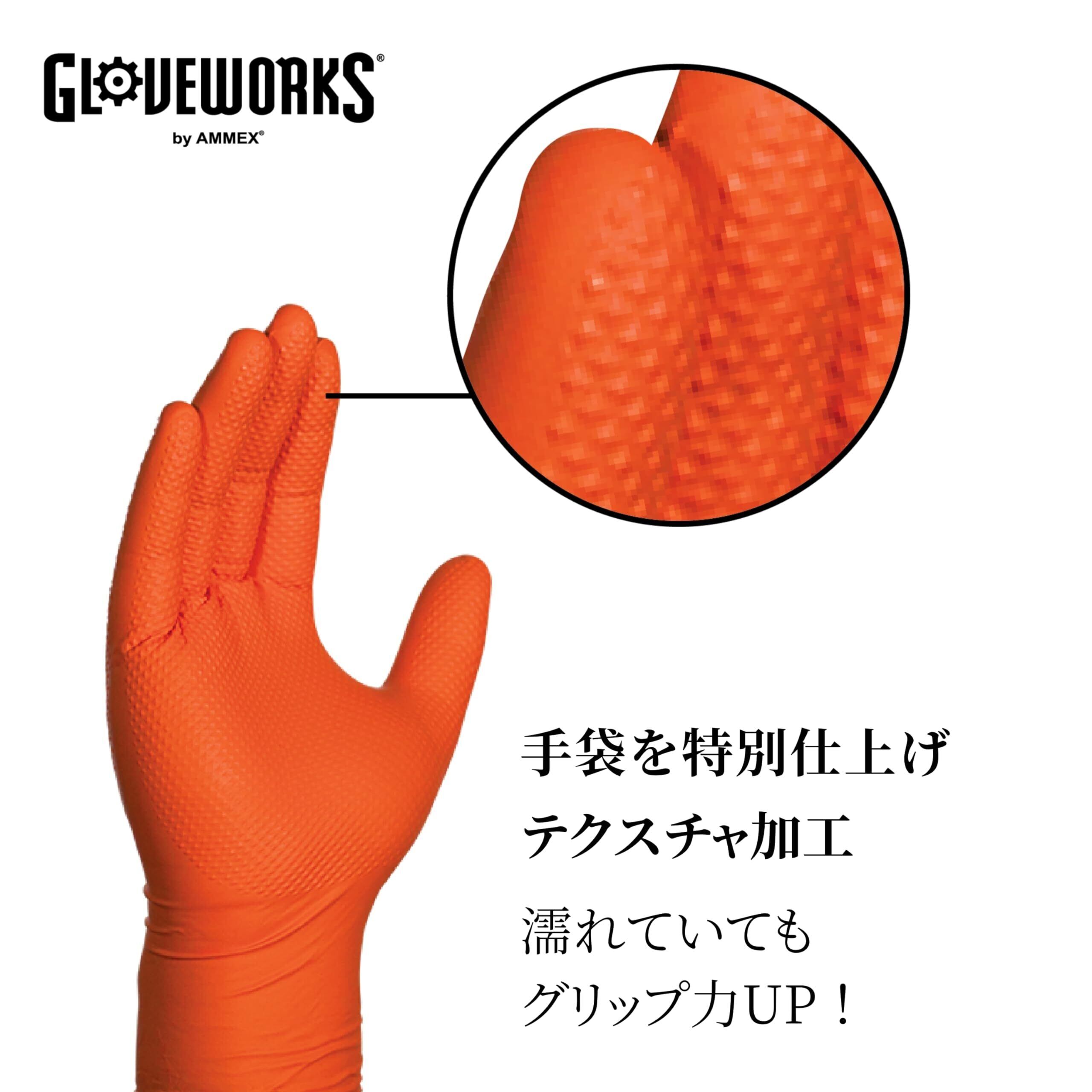 [Gloveworks] グローブワークス 厚手の ニトリルグローブ オレンジ - ダイヤモンド加工の強力なファルコングリップ使い捨て手袋、ゴムニトリ 手袋、エンジニアグローブ、 メカニックグローブ、 自動車やバイクのメンテナンス ニトリル手袋、 耐油作業手袋、 100 枚入りボックスまたは 1000 枚入りケース、 8mil/0.2mm、 オレンジ ク手袋 作業用
