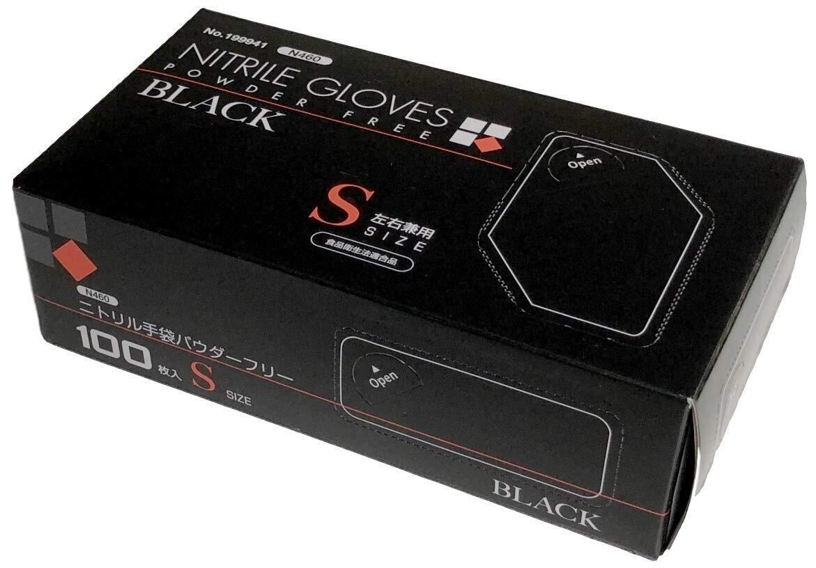 【特価セール】水野産業 【食品衛生法適合】 ニトリルグローブ 黒 ブラック パウダーフリー 100枚入 N460 (S)