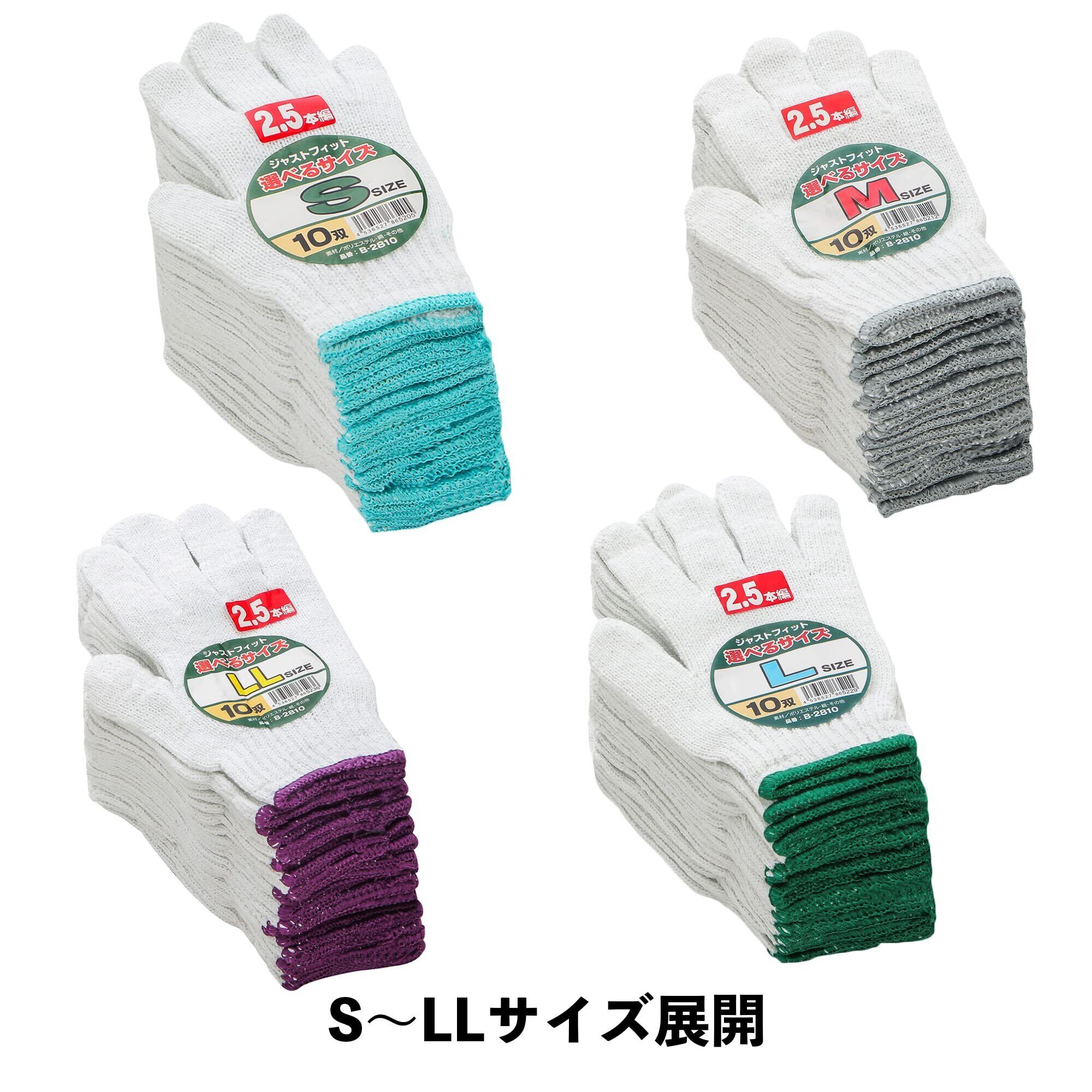 [CO-COS] B-2810 サイズ軍手2.5本編み10P サラシ S