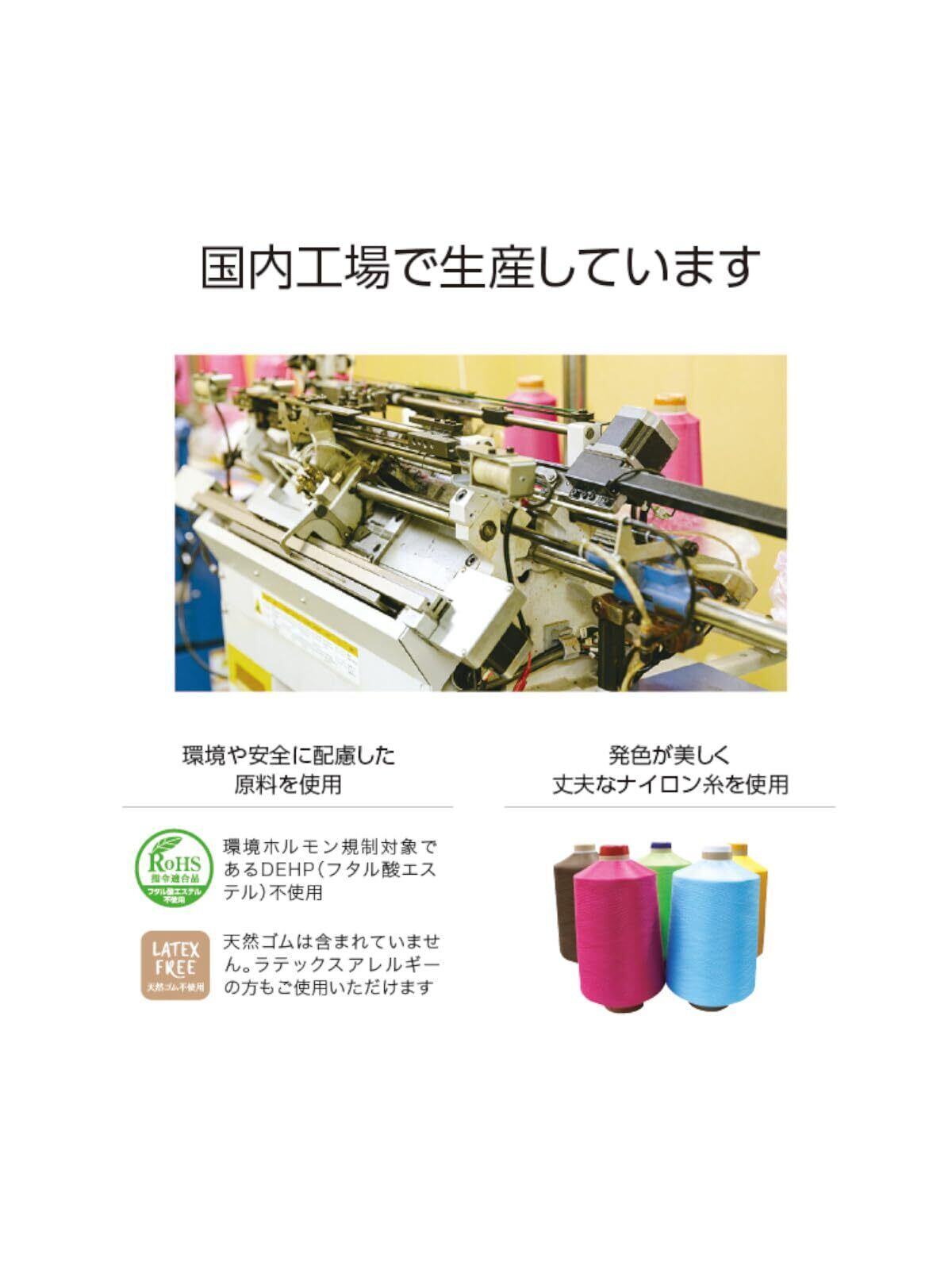 フィット感のある小指又を下げて編む独自技術「三本胴編み製法」