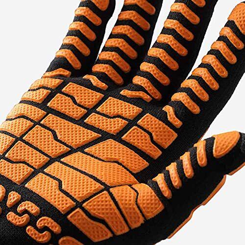 手甲保護手袋 まもるくん 。手甲にある衝撃吸収セルが、打ち損じや挟み込みなどの衝撃を軽減します。手袋はやわらかく伸縮性があるので、指にぴったりフィットします。細かな作業も行うピッキング作業や荷物の運搬・運送作業に最適です。