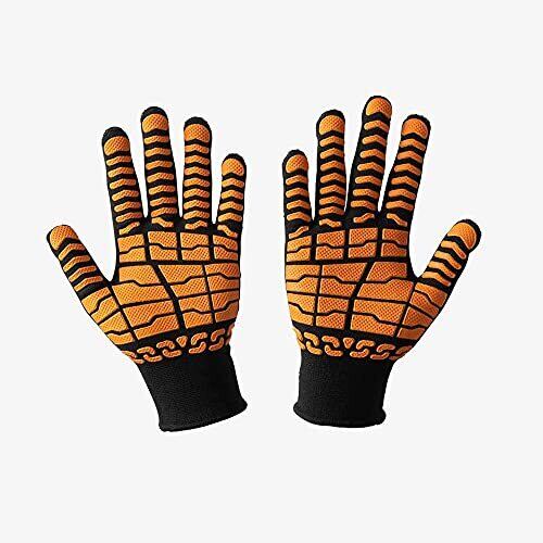 手甲保護手袋 まもるくん 。手甲にある衝撃吸収セルが、打ち損じや挟み込みなどの衝撃を軽減します。