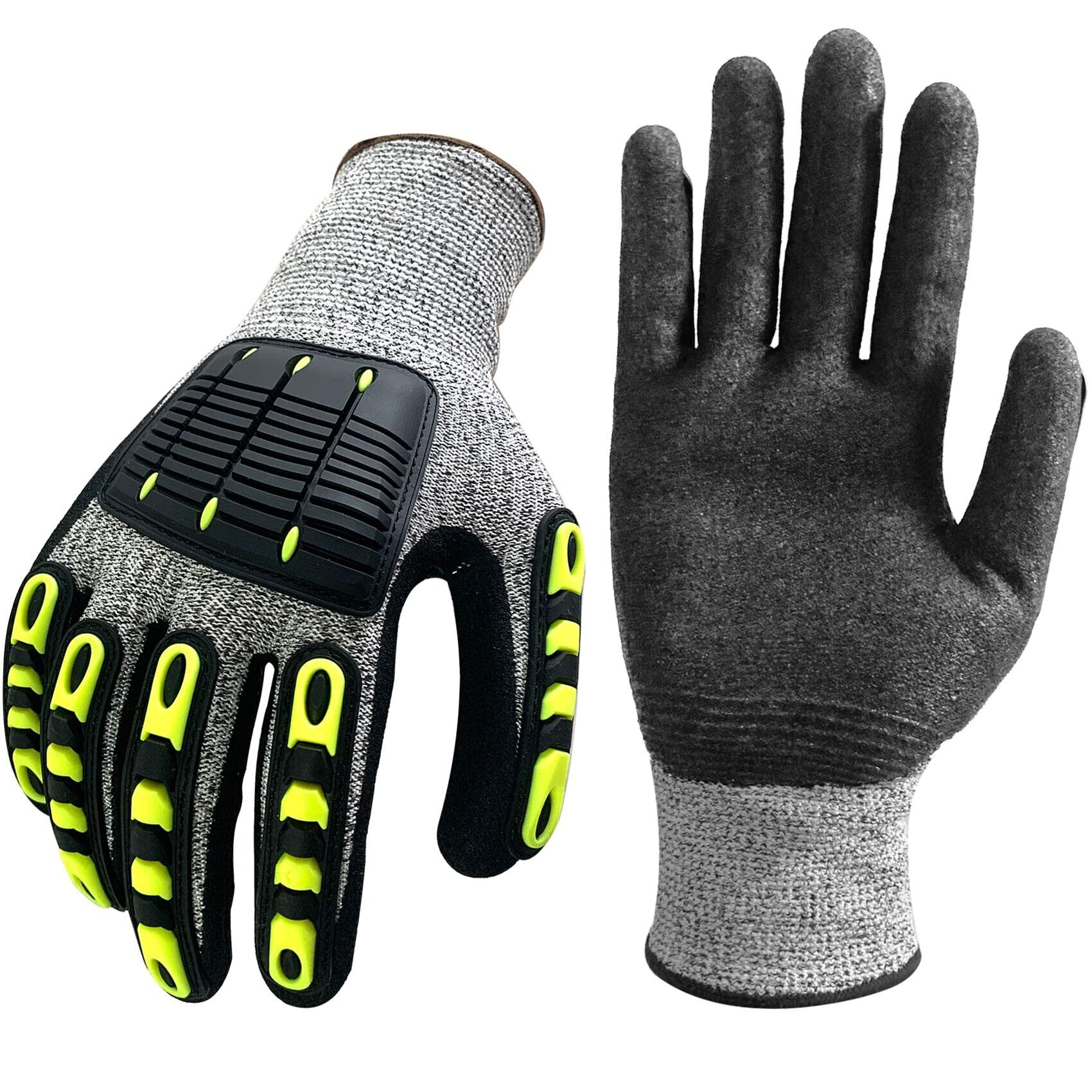 【HPPE防刃5級の防振手袋】はヨーロッパEN388最高級5級テストに合格し、本防振手袋は高性能材料HDPEによって編まれ、強度は普通の軍手の10倍以上、皮革手袋の4倍以上に達する。耐熱性もあり、草刈り機やチェーンソー作業時の危険回避に最適です。庭仕事、畑作業、電動ドリルなどを用いるDIYにもおすすめ。しっかりと手を包み、保護してくれる手袋です。