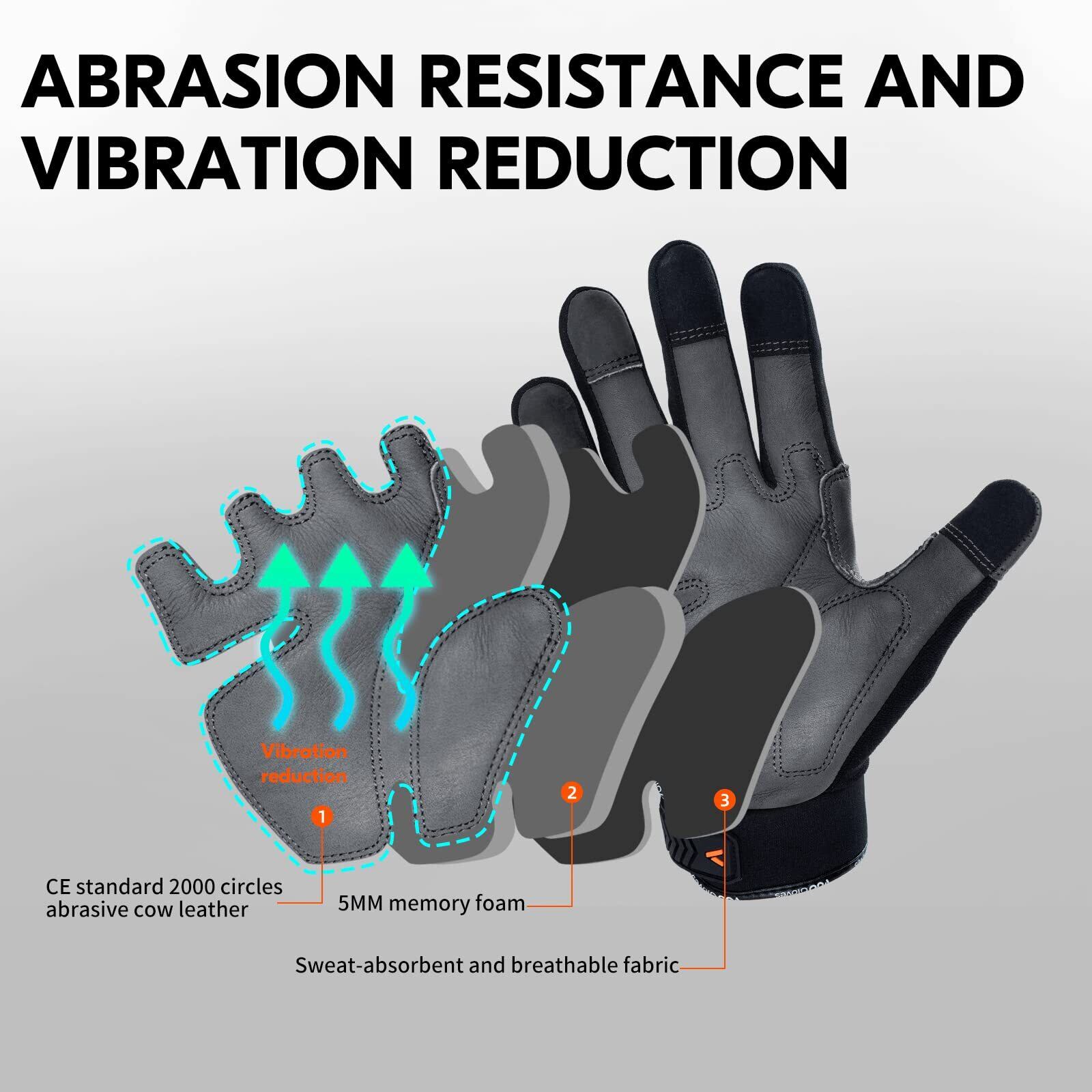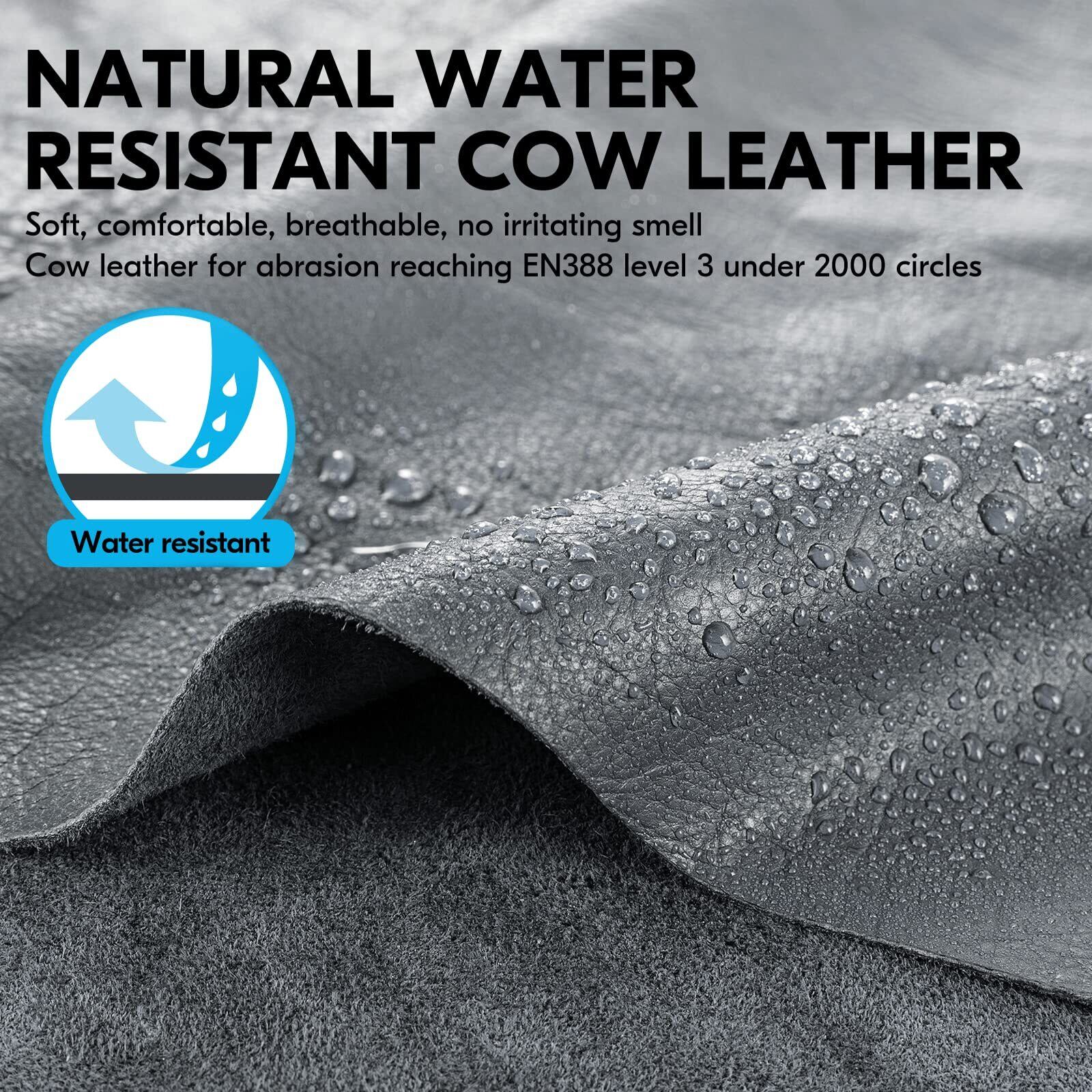 【上品な牛革と振耐摩耗性】0.8-0.9mm防水、ソフト、快適、通気性がある牛革は、耐摩耗性と耐引き裂き性に優れています。(耐摩耗性-2000回転数までEN388レベル3、引き裂き抵抗性-50Nでレベル3に達する)