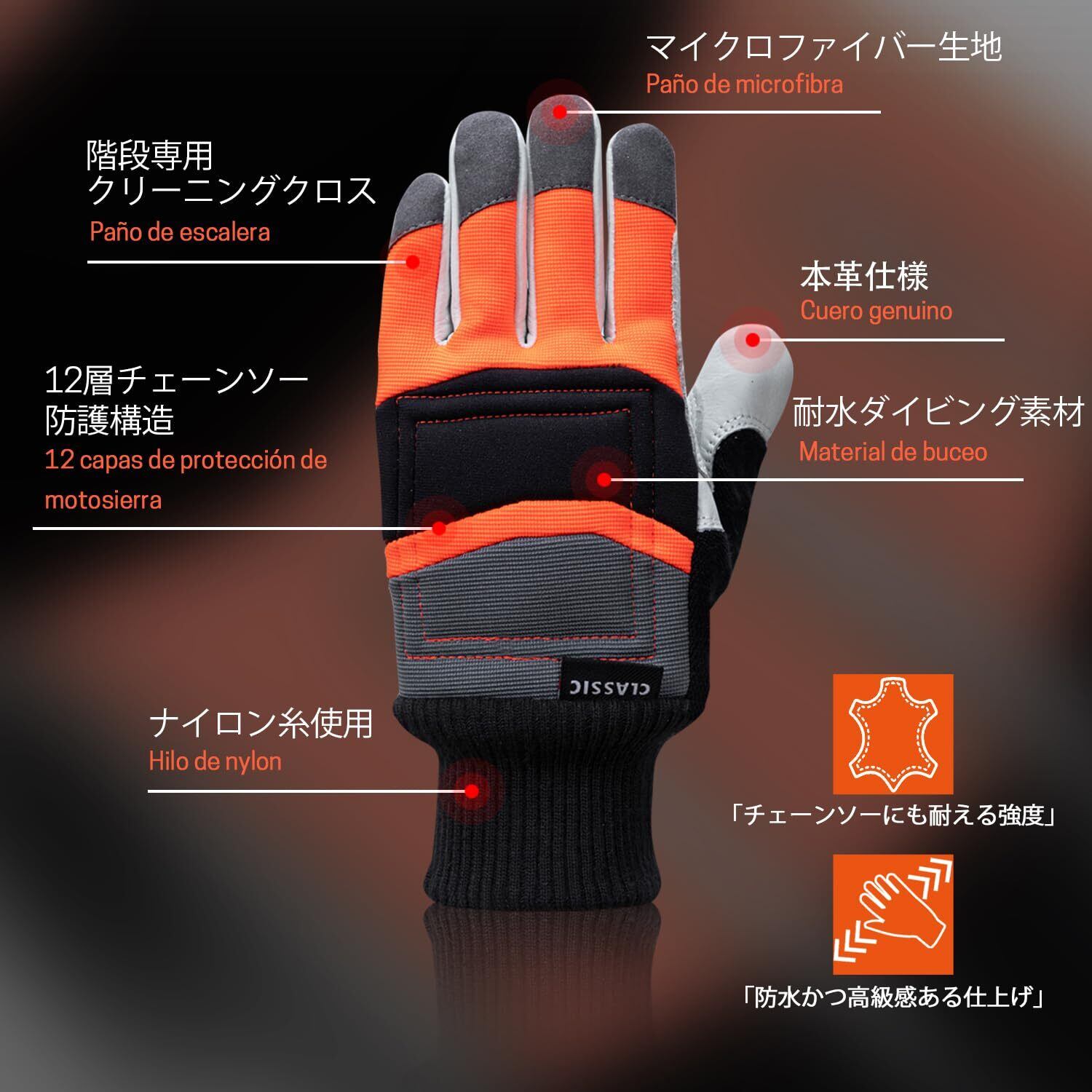 [YARDMARIS] チェーンソーグローブ - 左手甲部分12層防護 牛革レザー掌部 メカニックグローブクラシック防刃レザー手袋 山仕事 伐採 草刈りチェーンソー布 切断防止機能付き CLASSIC 1双入